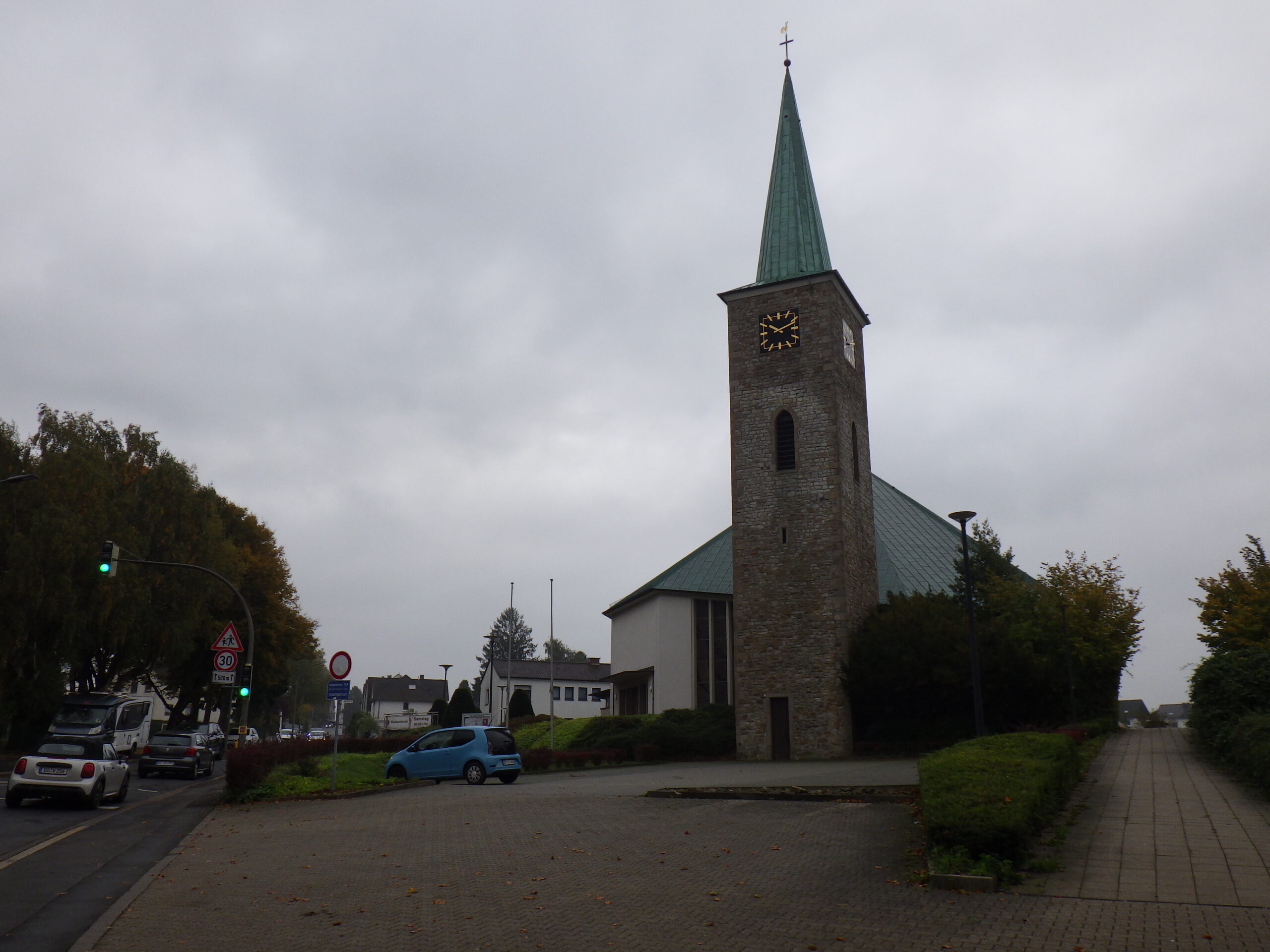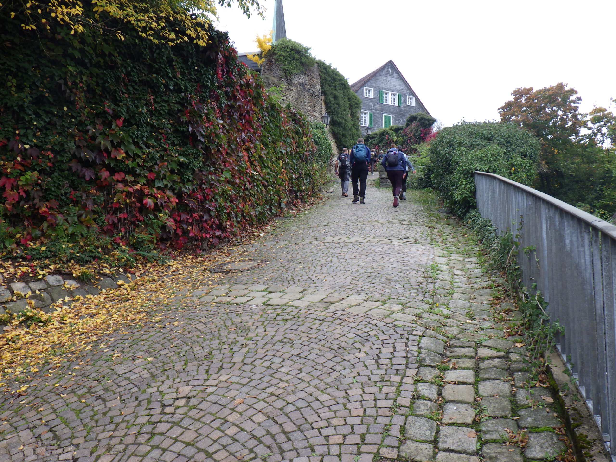 Auf der anderen Seite des Harkortsees nun Wetter. Der Ort heißt so. Manche sagen auch Harkortstadt. Mammuts sagen Hardcore-Stadt. Da hatte der Friedrich Harkort wohl viele Fans. Weniger harmlos der dazugehörige Berg: der Harkortberg. Es ging erstmal aufwärts. An dieser Stelle lies es dann deutlich bei mir nach. Aber ich erreichte die Freiheit. Dort steht die reformierte Wetter-Kirche, die Pizzeria Testarossa und nun auch ich. Wenigstens hieß die Pizzeria nicht auch noch Harkort.