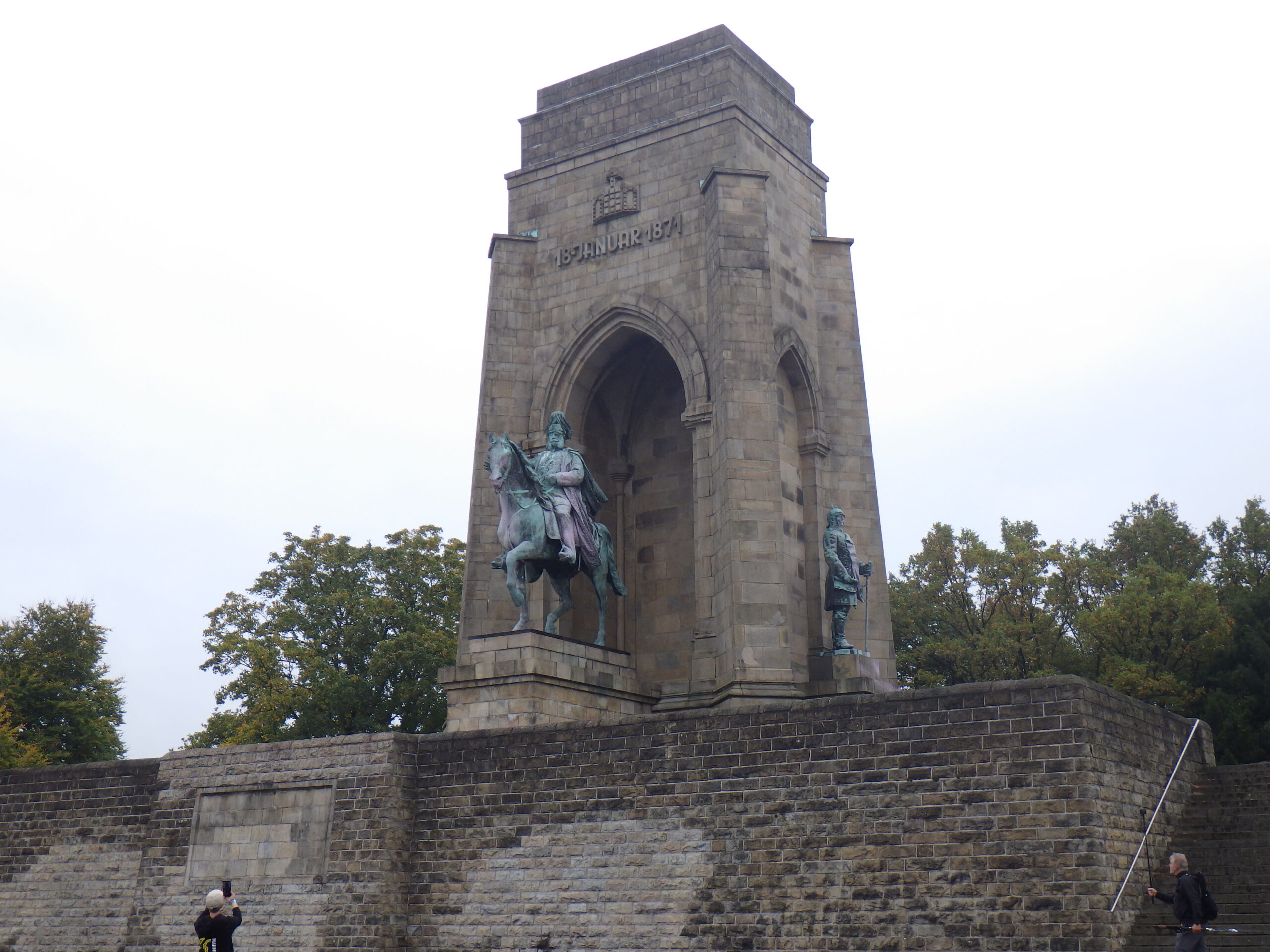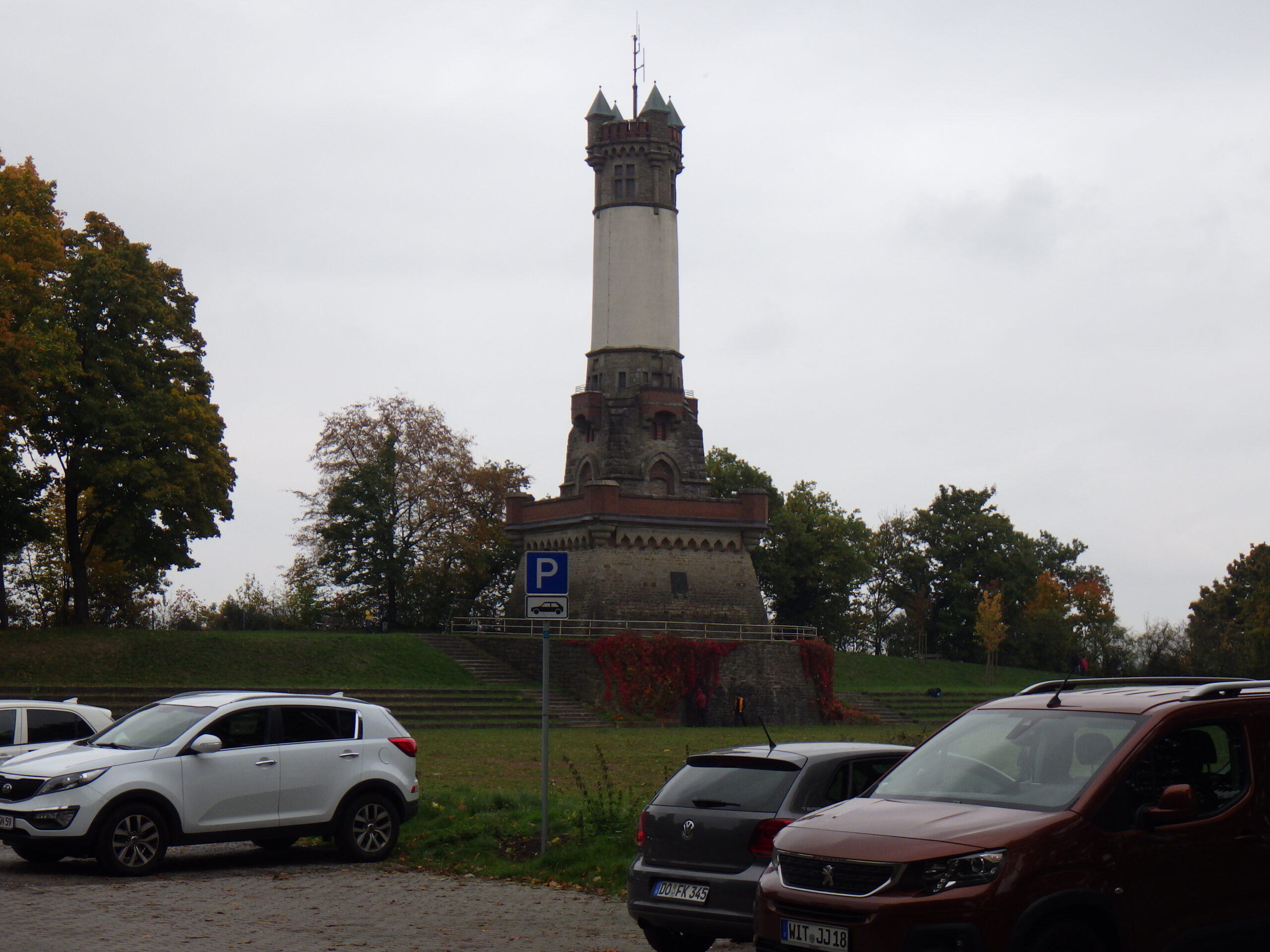 Dann ging es wieder abwärts. Ich rutschte ein bisschen mit den HOKAs auf dem nassen Gras. Und schon folgte der nächste Berg. Die ausgelassene VP-Pause machte ich nun in kleinen Pausen bei den Anstiegen. Dann endlich oben. Der vierthöchste Berg des Ardey-Gebirges: der Syberg. Dort gab es Sachen zum angucken: ein 26 Meter hoher Aussichtsturm (Vincketurm), ein Kaiser-Wilhelm-Denkmal (für Wilhelm I.) und der Blick nach unten. Auf dem Abstieg vom Berg ging es vorher an Buttermütze vorbei durch die Hohensysburg-Ruine. Irgenwie kamen uns nun jeden Menge 42er Mammuts entgegen.