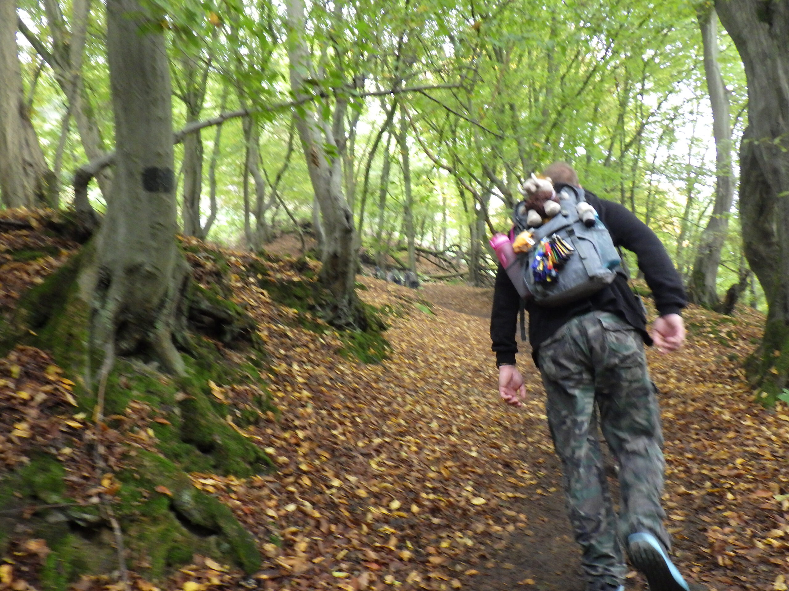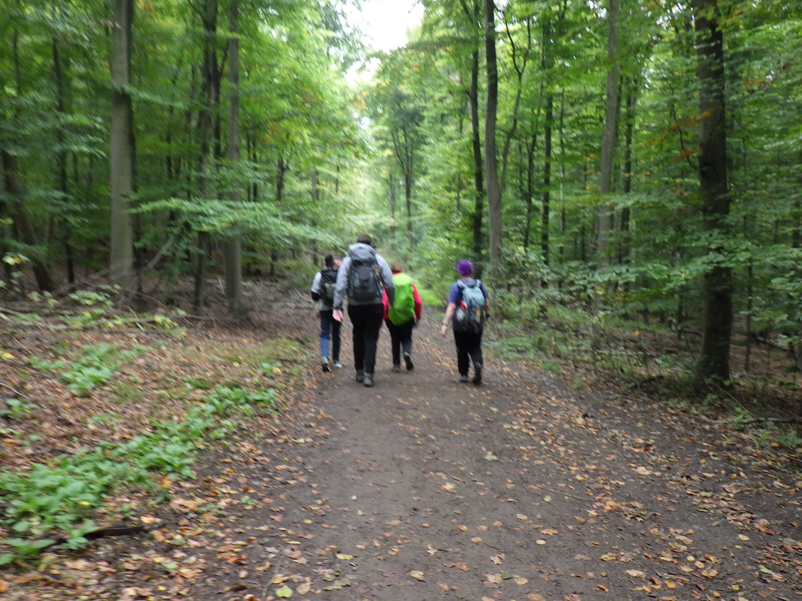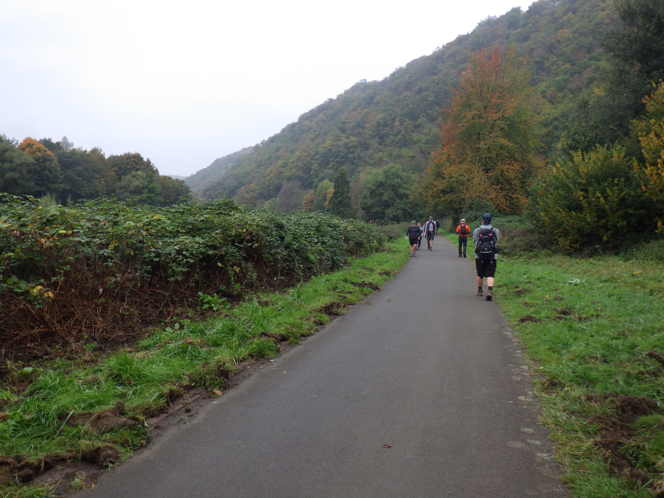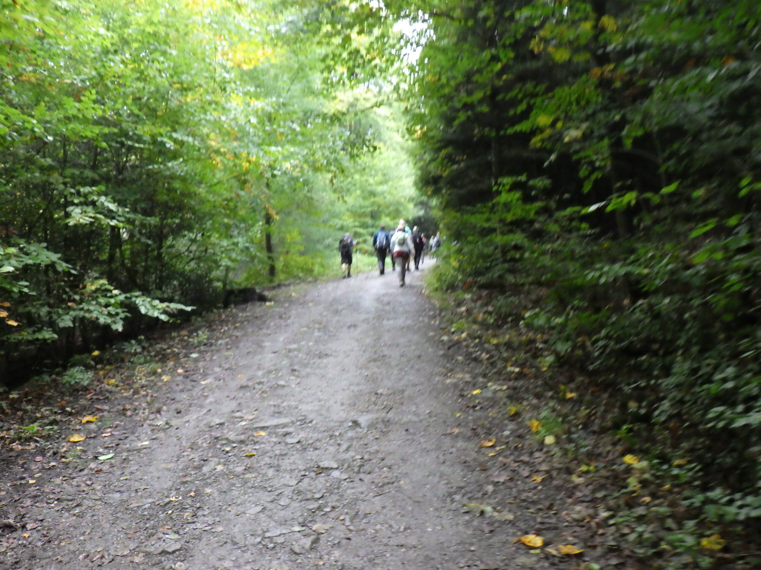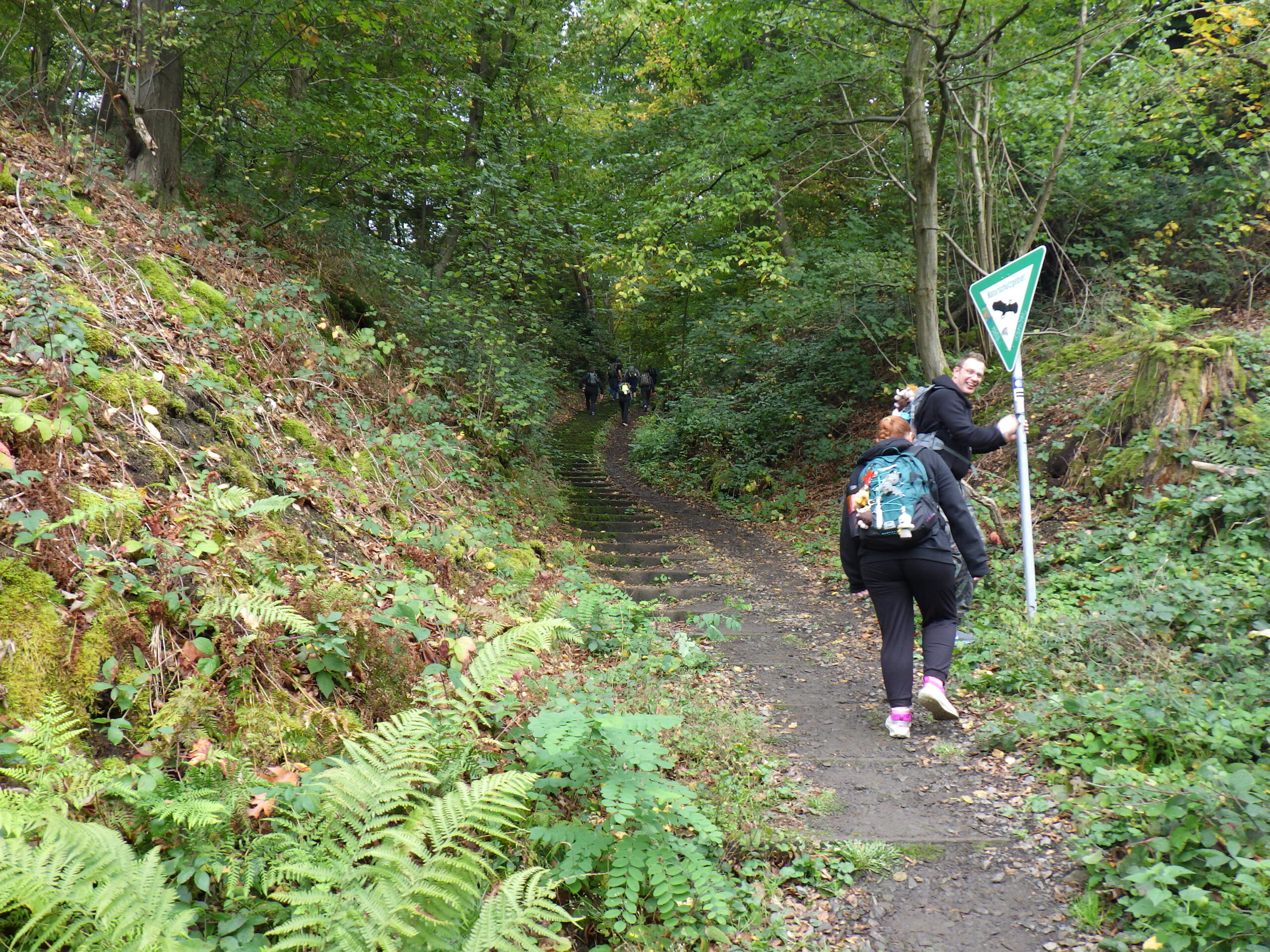 Die nächsten zehn Kilometer folgte nun der höchste Berg des Ardeygebirges: der Berg heißt „Auf dem Heil“. Das ist ein langgestreckter Bergrücken. Wir liefen auf dem Wanderweg im Süden um den Berg herum. Im Osten gab es dann einen Aufstieg mit einem Serpentinenweg. Nach den bisherigen Bergen wirkte das schon fast harmlos. Es gab auch nichts zum fotografieren, halt ein Waldweg. Wieder abwärts, dann das 40-Kilometer-Schild.