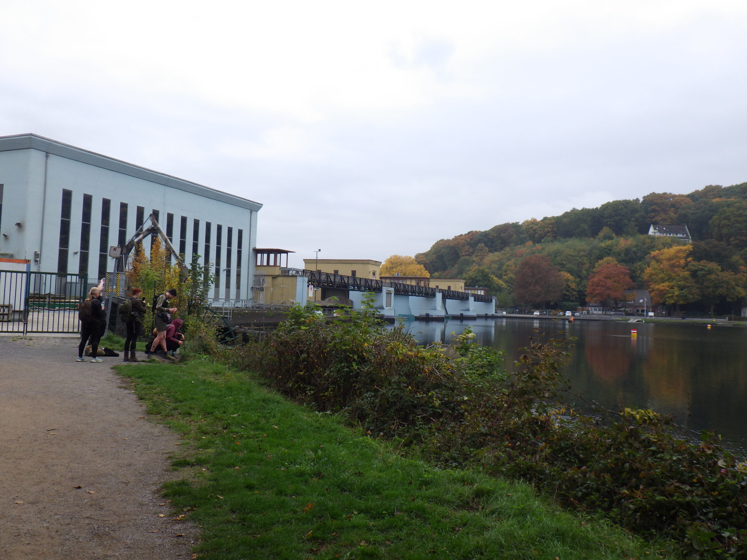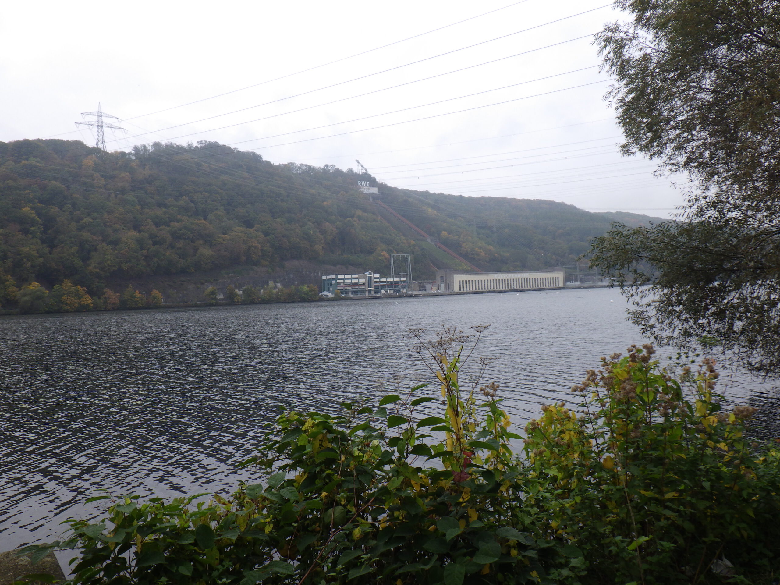 Auf der anderen Seite des Sees folgte nun das Pumpspeicherkraftwerk Herdecke von RWE. Das Kraftwerk pumpt Wasser in einen höhergelegenen See, der vom Wanderweg aus nicht sichtbar war. Bei Stromspitzen wird das Wasser durch eine Turbine wieder abgelassen und erzeugt Strom. Am Ende des Stausees dann das Laufwasserkraftwerk Hengstey mit den drei Kaplan-Turbinen. Wir überquerten auf der danebenliegenden ehemaligen Eisenbahnbrücke erneut die Ruhr. Übrigens auf der Trasse des Ruhrtalradweges. Wanderungen auf Radwegen sind immer eine gute Idee. Nein.