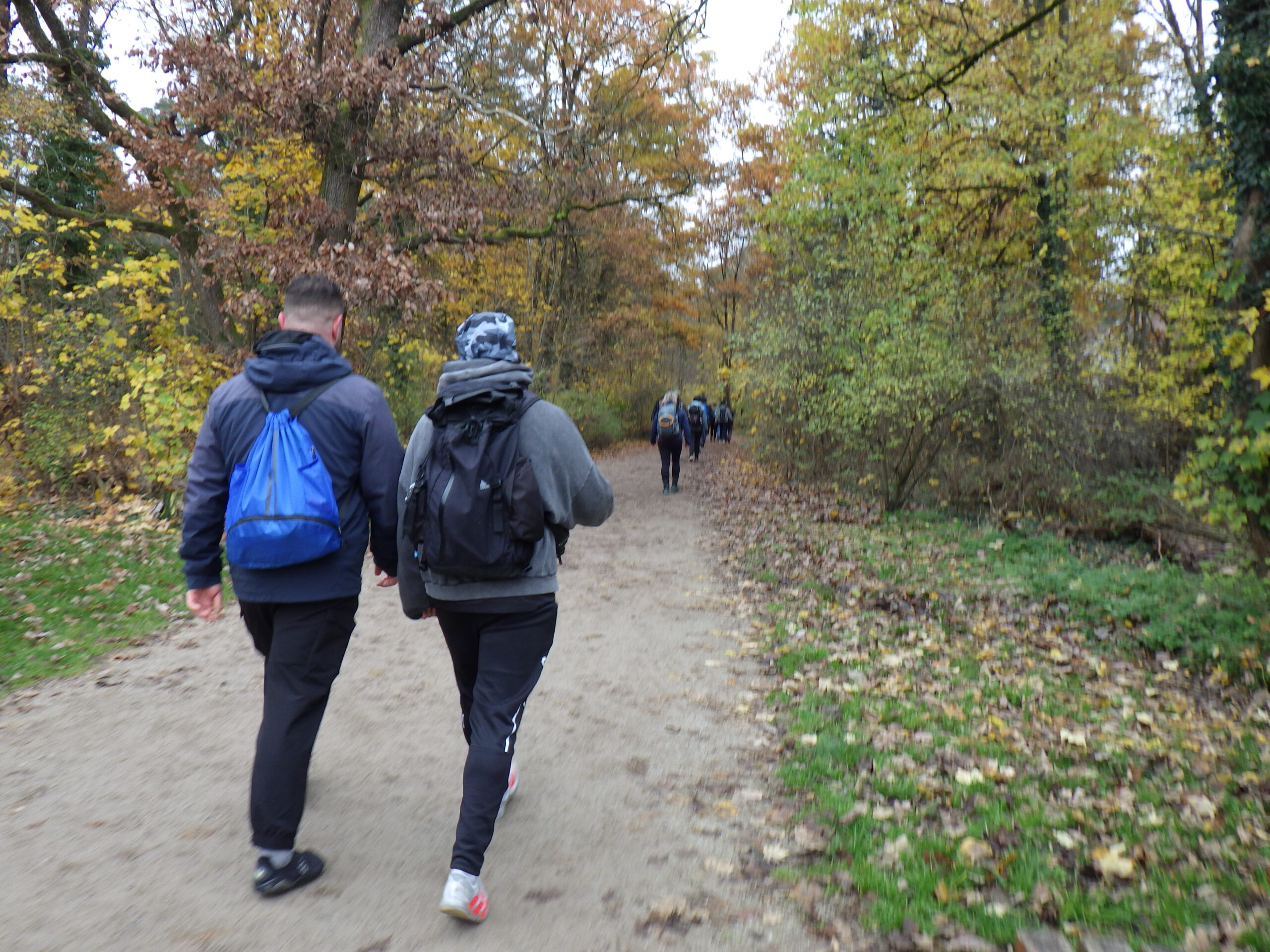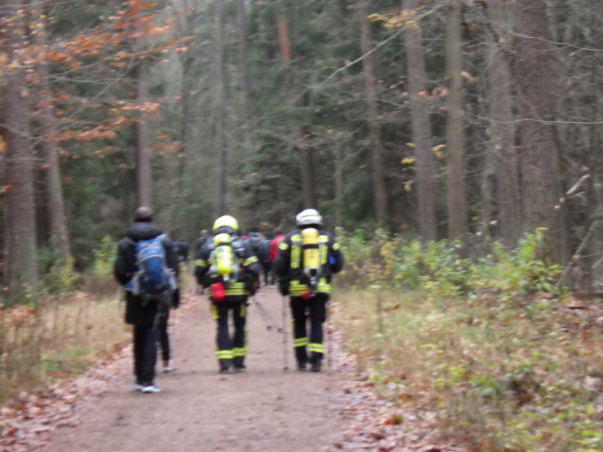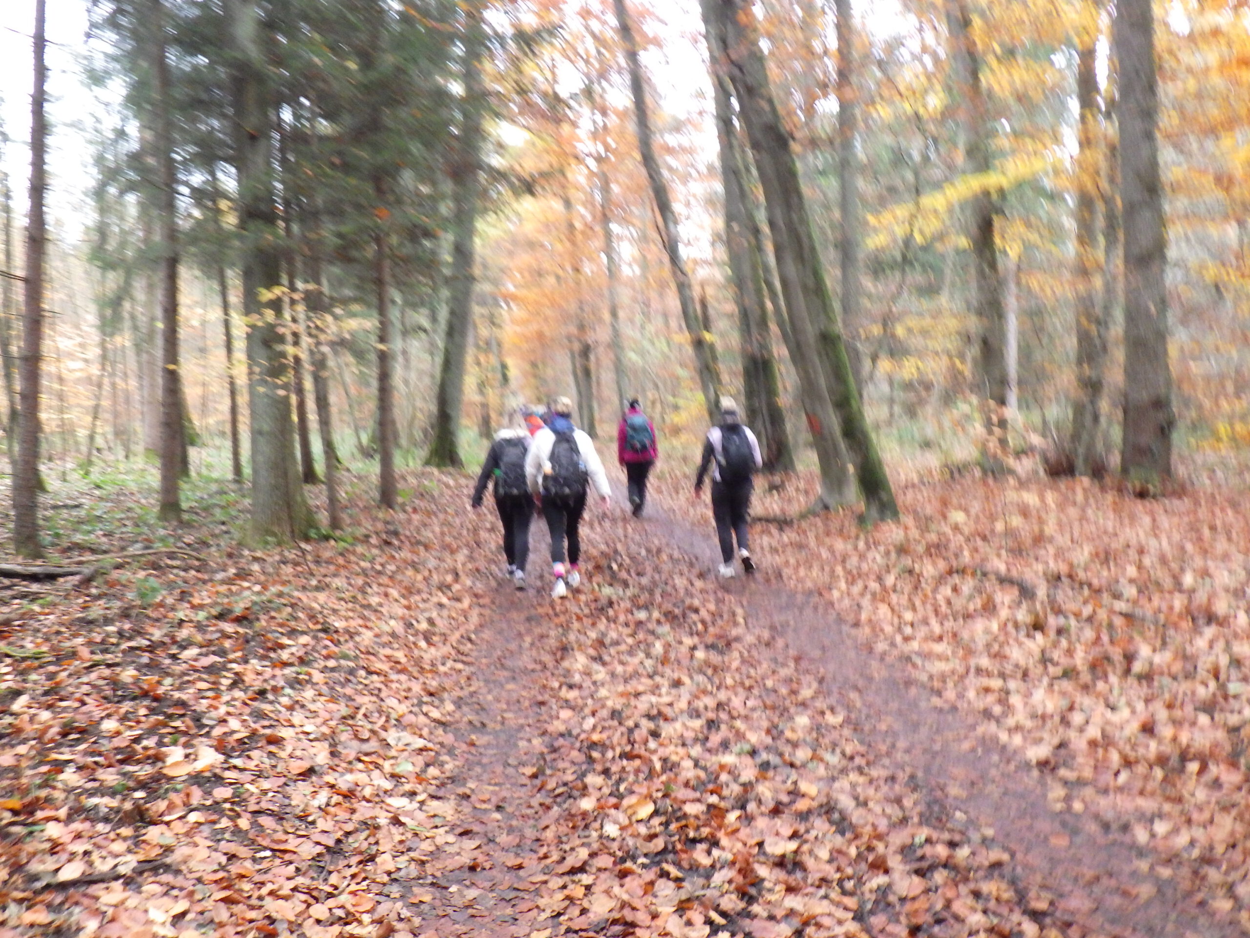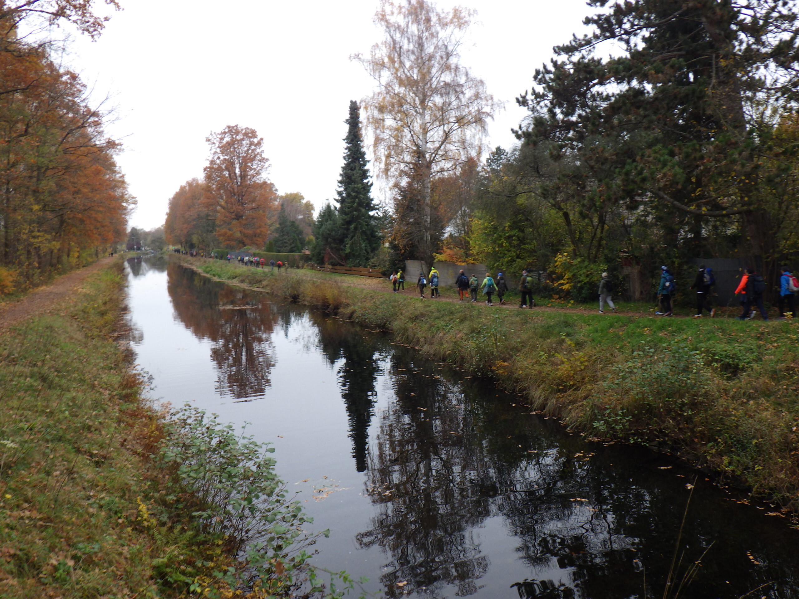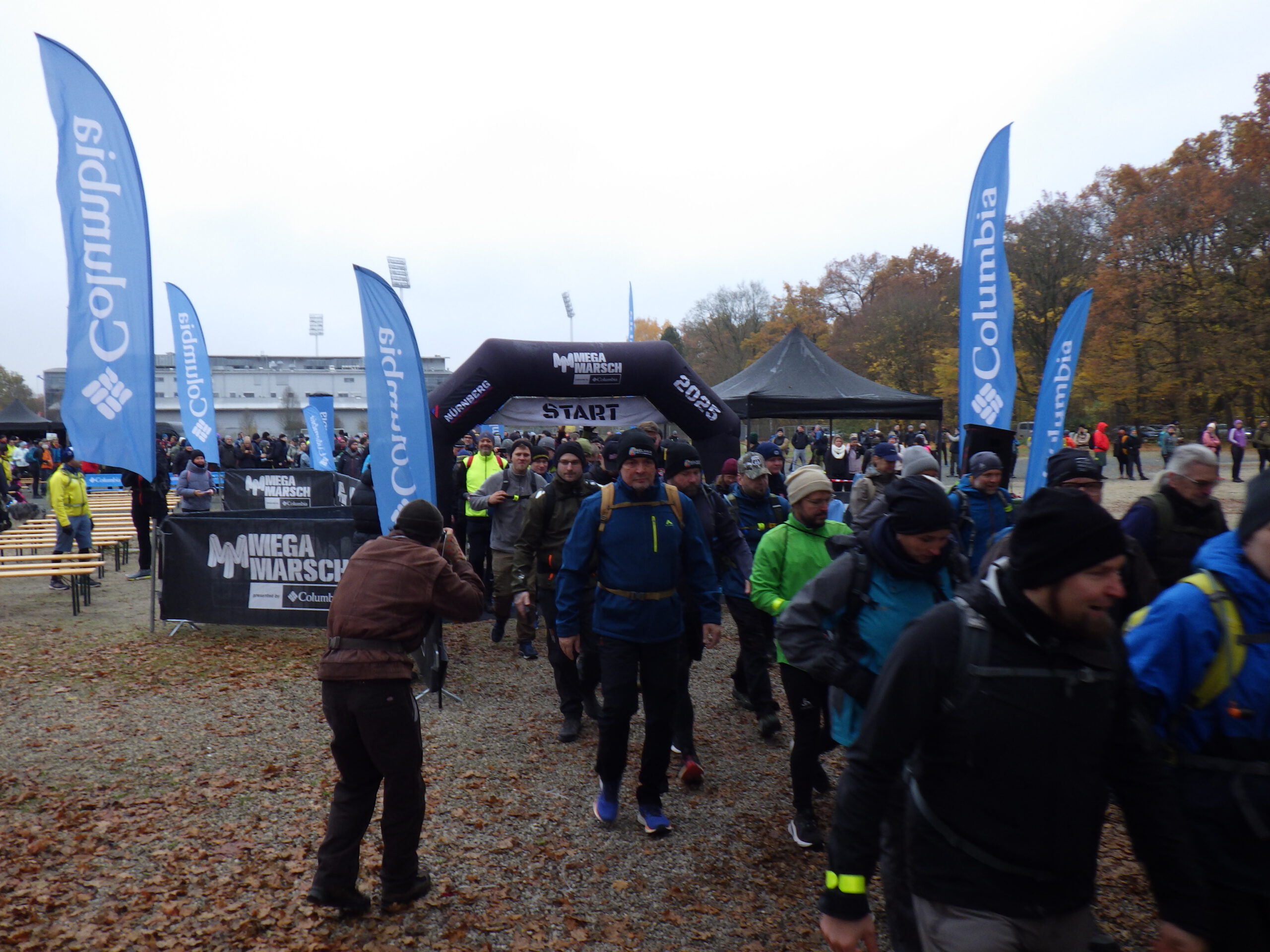 Ich zog noch den mitgebrachten Extra-Pullover an, da es nur 4°C waren und startete 5 Minuten eher, also 9:25 Uhr, da die vorherige Startgruppe nicht voll wurde. Die ersten zehn Kilometer waren ziemlich schnell. Es wurde zwischen 5 und 7 km/h gelaufen. Nach eineinhalb Kilometern ging es direkt in den Wald. Der Reichswald um Nürnberg ist ein im Nord- und Südosten Nürnbergs gelegenes Kulturwaldgebiet und gehörte früher direkt und unmittelbar dem Kaiser. Er gilt als ältester und erster Kunstforst der Welt. Er sieht heute nicht wirklich nach Baum-Plantage aus.