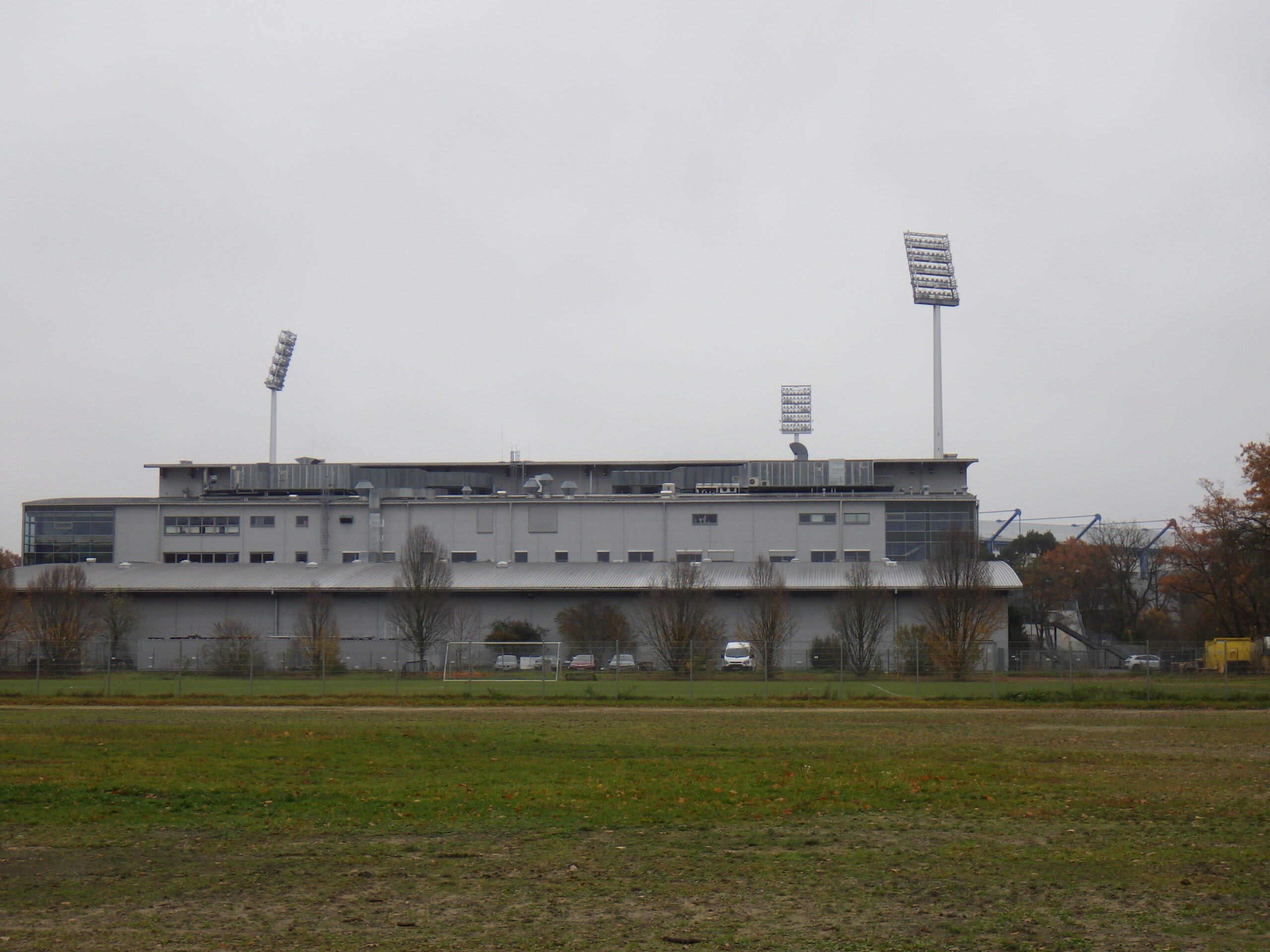 Nach eineinhalb Kilometern erreichte ich den Jedermann-Sportplatz. Dort ist manchmal „Rock im Park“. Der ist neben dem Zeppelinfeld. Am 27. August 1909 landete dort ein Zeppelin-Luftschiff, worauf auch der heutige Name zurückgeht. Gleich hinter dem Sportplatz lugte das Max-Morlock-Stadion hervor. Und weil ein Meyer meinte: „Normalerweise müsste man ihm ein Denkmal bauen“, hat man das irgendwo auch gemacht.
