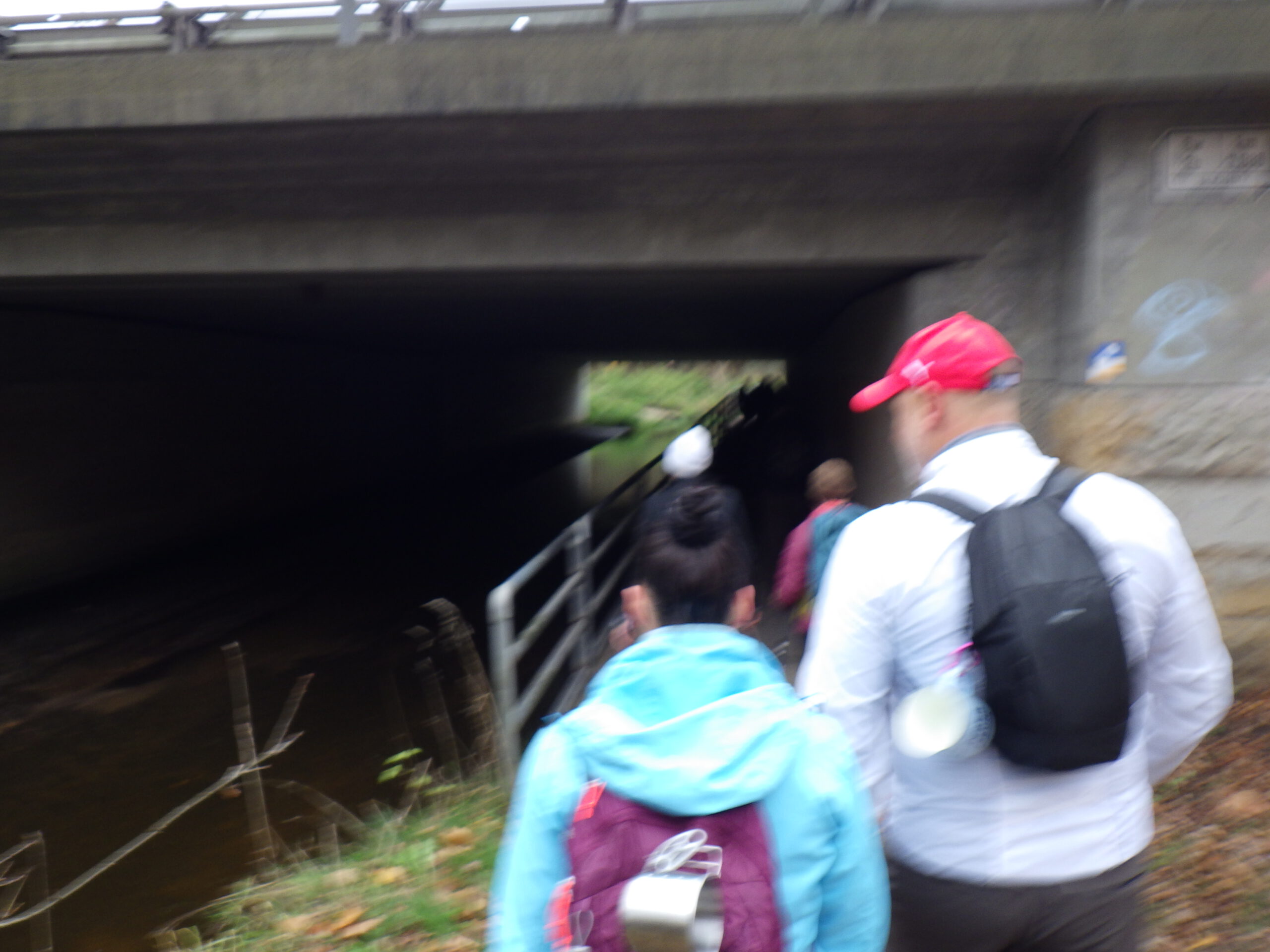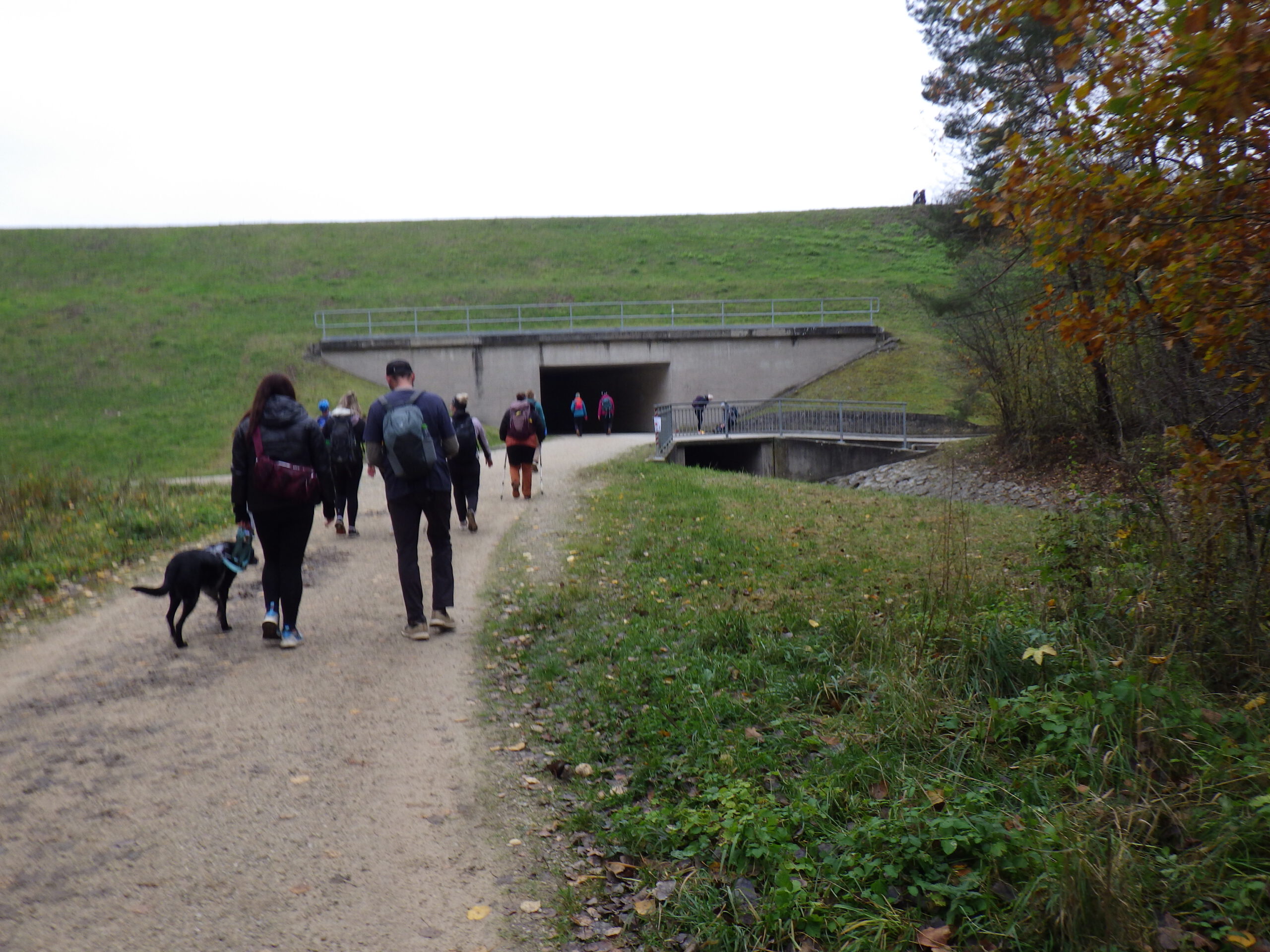 Den Main-Donau-Kanal haben wir nicht wirklich gesehen, denn wir haben ihn unterquert. Zusammen mit dem Eichenwaldgraben ging es durch den Tunnel. Ein kleines Wasserkreuz. Nach weiterem Wald kam dann Reichelsdorf. Dort war der dritte VP. Ich trank Cola mit Kakaogeschmack und das mitgebrachte Magnesium-Wasser, da mir etwas die Waden schmerzten. Außerdem war ein Quetschie fällig. Leider war das ganze Zeug sehr kalt, denn es waren so 5 Grad. Nach dem Weiterlaufen gab es daher noch ein High 5.