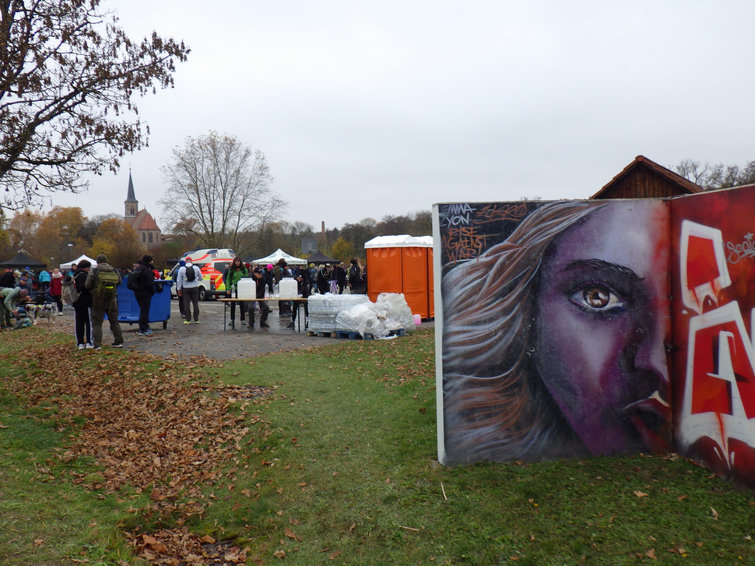 Der Weg führte nun an der Rednitz entlang. Es folgten Lohhof und Gerasmühle und dann Stein. Hier gab es ab 1719 die ersten Bleistiftmacher. 1761 mischte der Schreiner Kaspar Faber das Game neu auf und eröffnete seine erste kleine Bleistift-Manufaktur. Heute das Unternehmen Faber-Castell. 2015 drehte Michael Moore hier einen Dokumentarfilm im Werk. Die Wanderer interessierten sich eher für die Hall Of Fame von Nürnberg-Stein mit recht interessanten Graffiti. Sehr interessant, aber Tempus fugit.