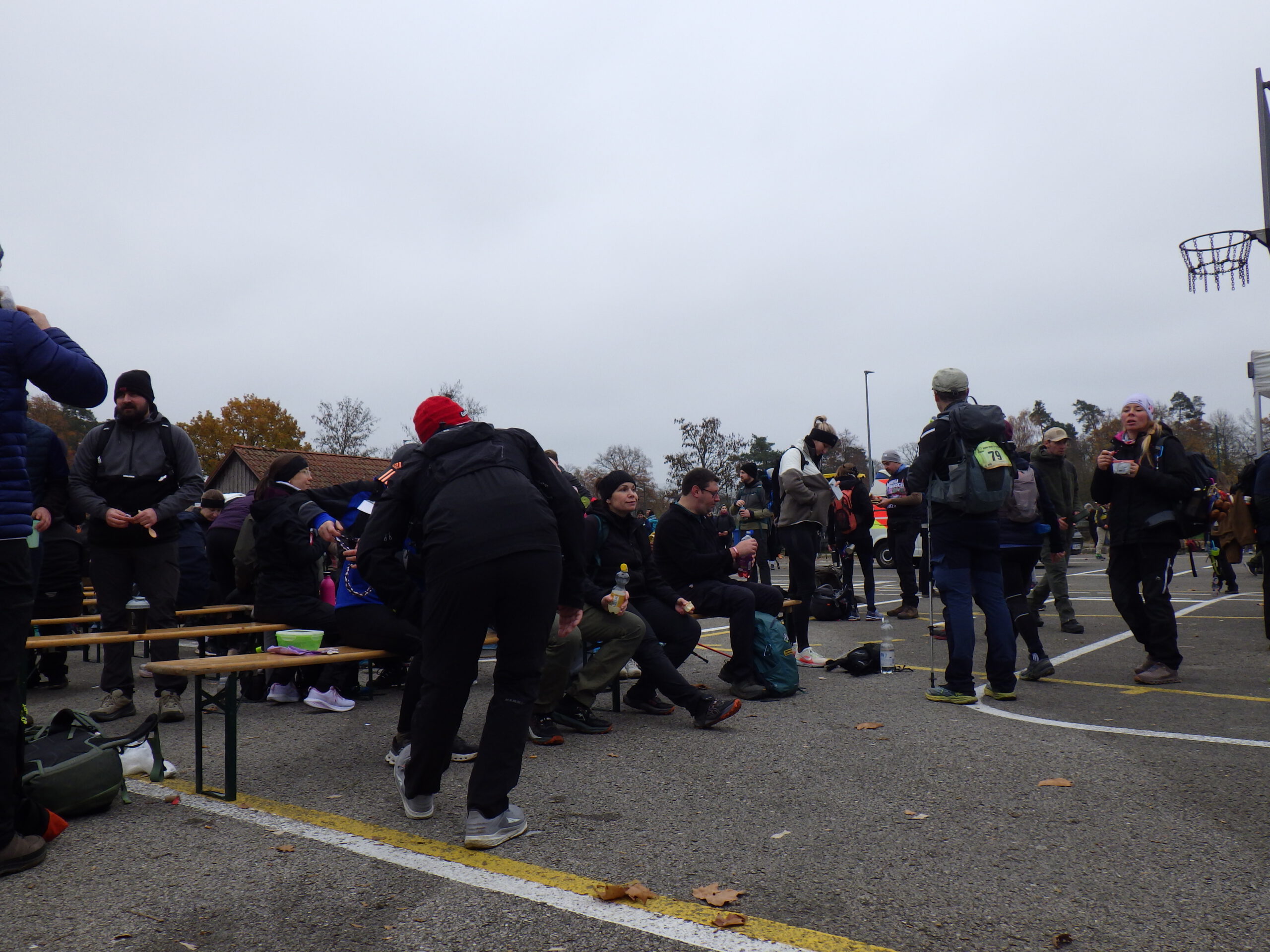 Die ganze Marschstrecke war übrigens etwas Single-Trail-lastig. Was dann eine Tempo-Challenge nicht so einfach macht. Dann folgt auch schon der VP 2 bei Kilometer 19 auf einem Verkehrsübungsplatz rechts des Weges. Hier hatte ich dreieinhalb Stunden auf dem Tacho, also eine halbe Stunde auf 5 km/h Vorsprung. Diesmal gab es einen heißen Kakao. Das Kakaopulver löste sich nicht ganz auf, so dass ich noch einen Teil mit Cola am VP 3 trank. Noch eine Gewürzgurke auf den Weg.