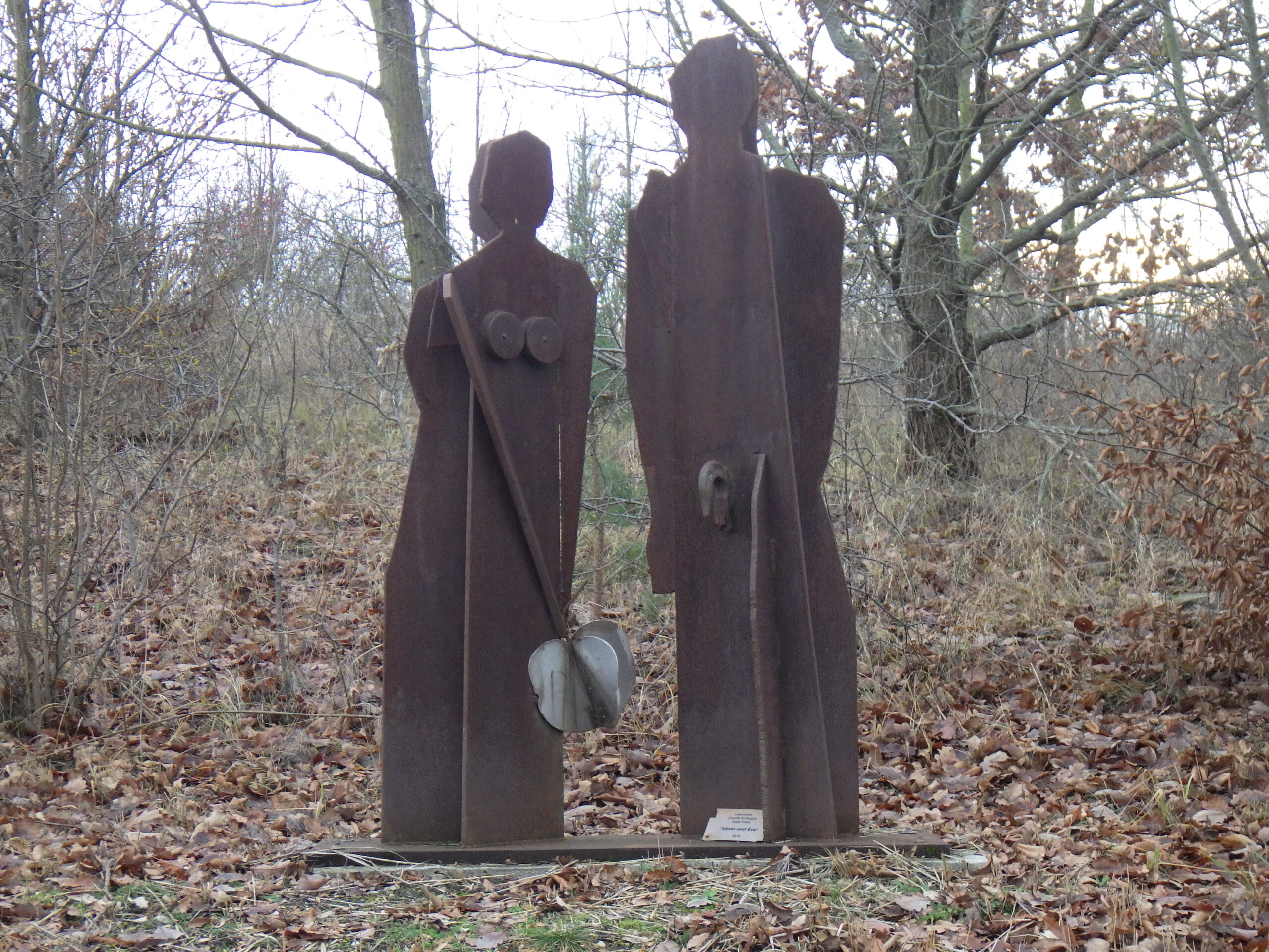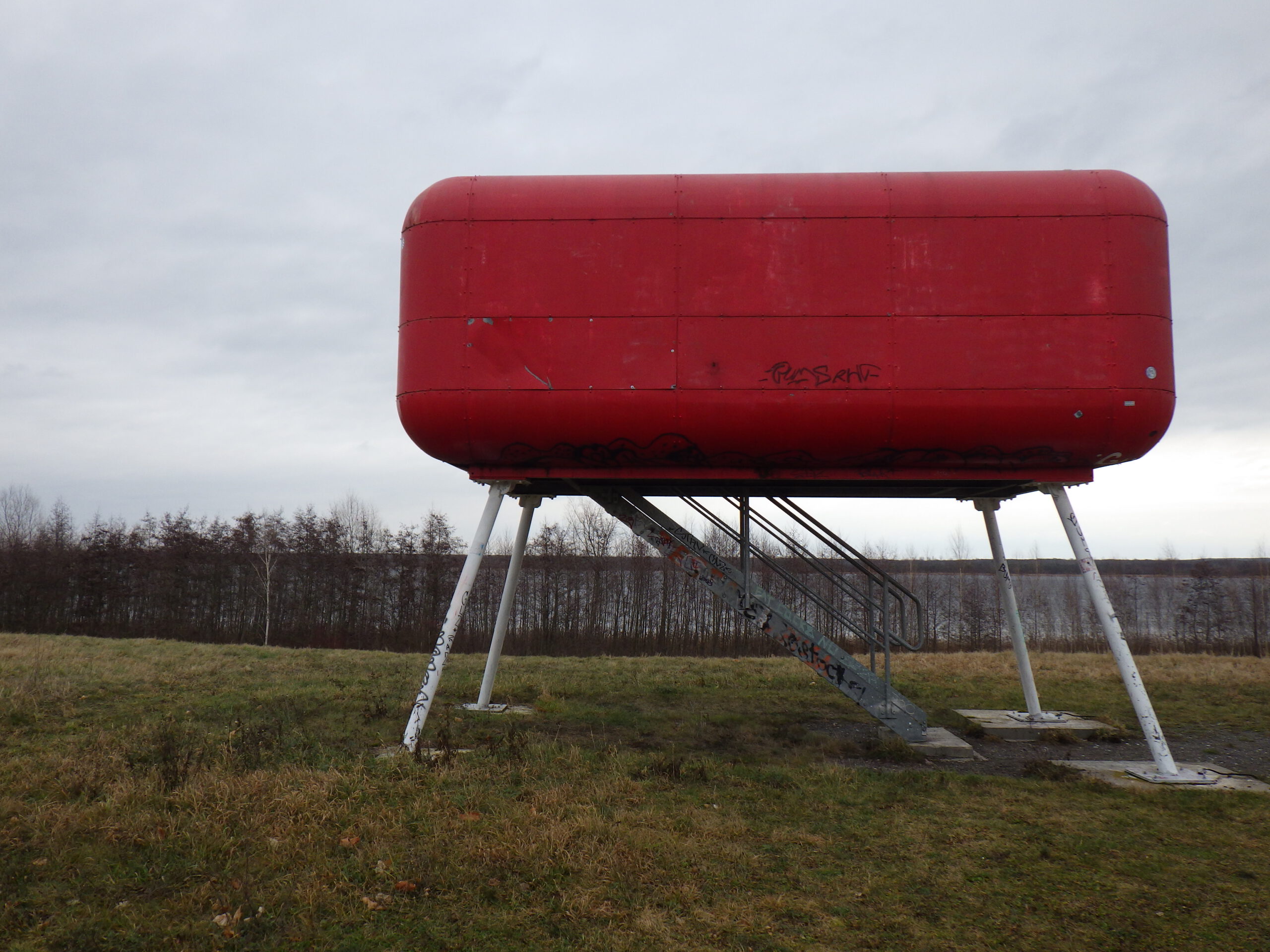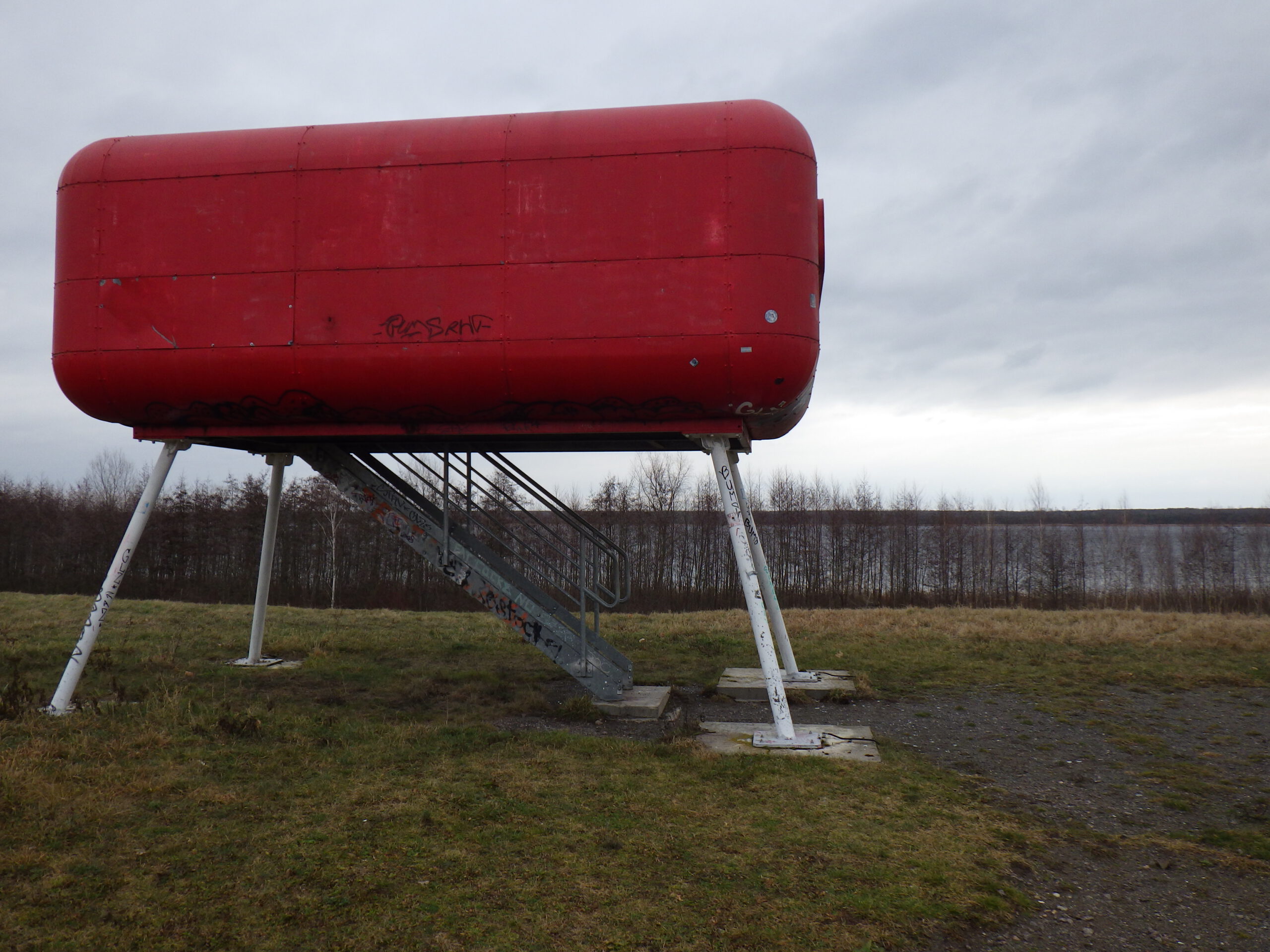 Um den See herum führt ein Seerundweg. Vom Stadtbalkon bis zur Ferropolisstraße gibt es Kunst am Wegesrand. Die Skulpturen wurden seit 2004 bis heute von Schülern der Ferropolis-Schule in Gräfenhainichen im Rahmen des Kunstunterrichts entworfen und gestaltet. Ein weiteres Highlight ist dann die Rote Büchse. Da können sich Wanderer bei Regen hineinsetzen und auf den See gucken. Es hat aber nicht geregnet und angesagt war eigentlich Schnee. Den gab es aber auch nicht.