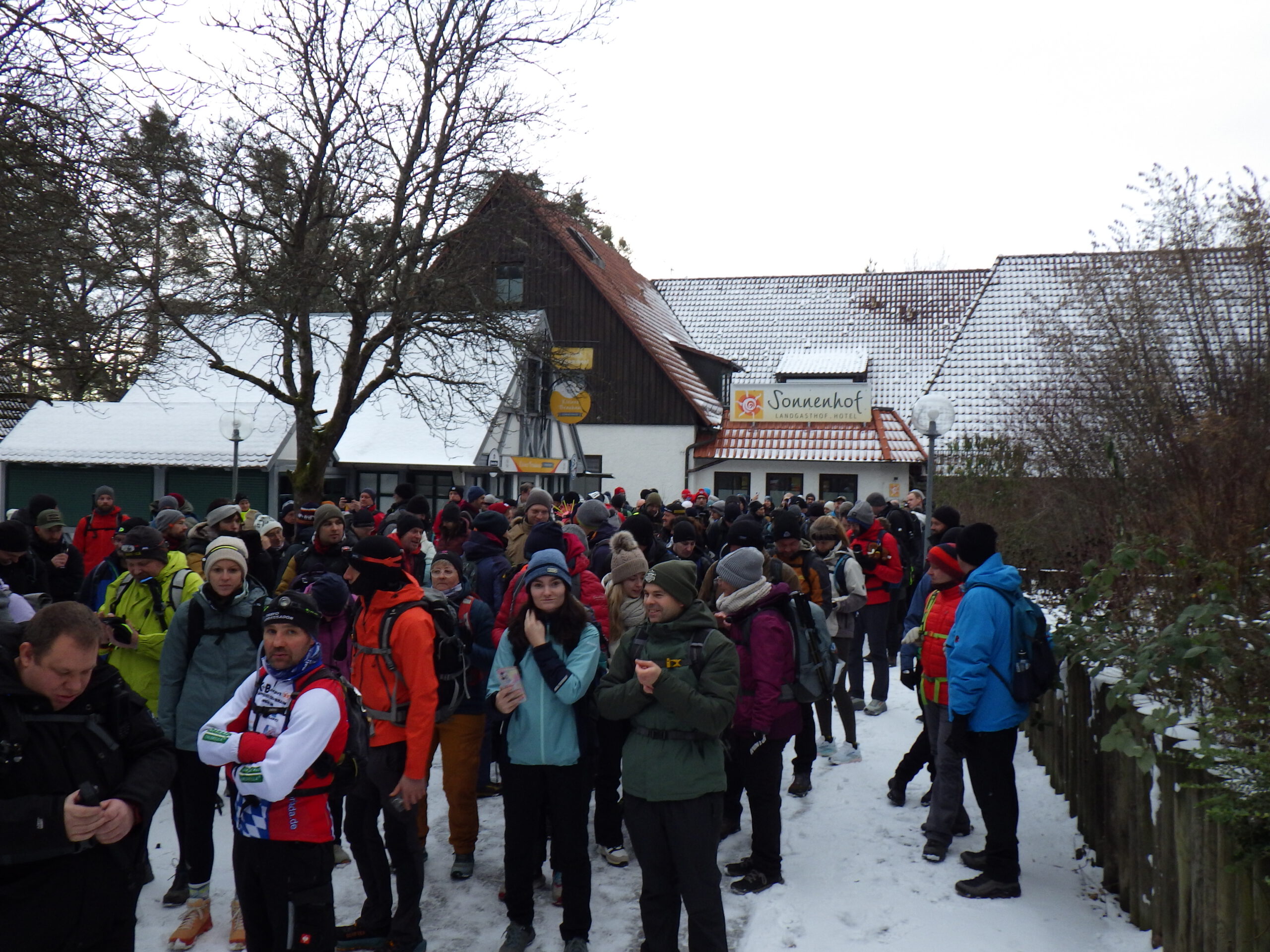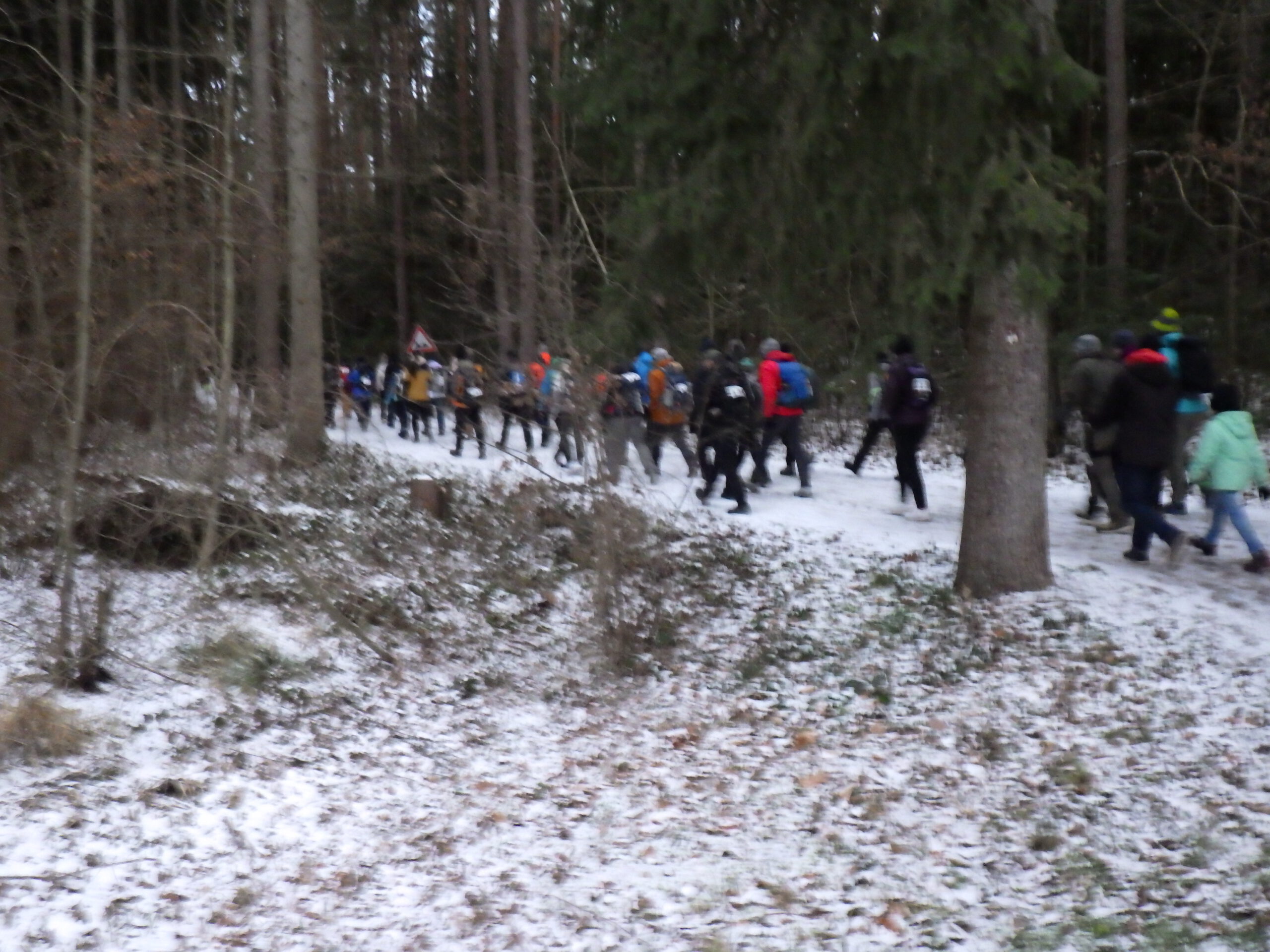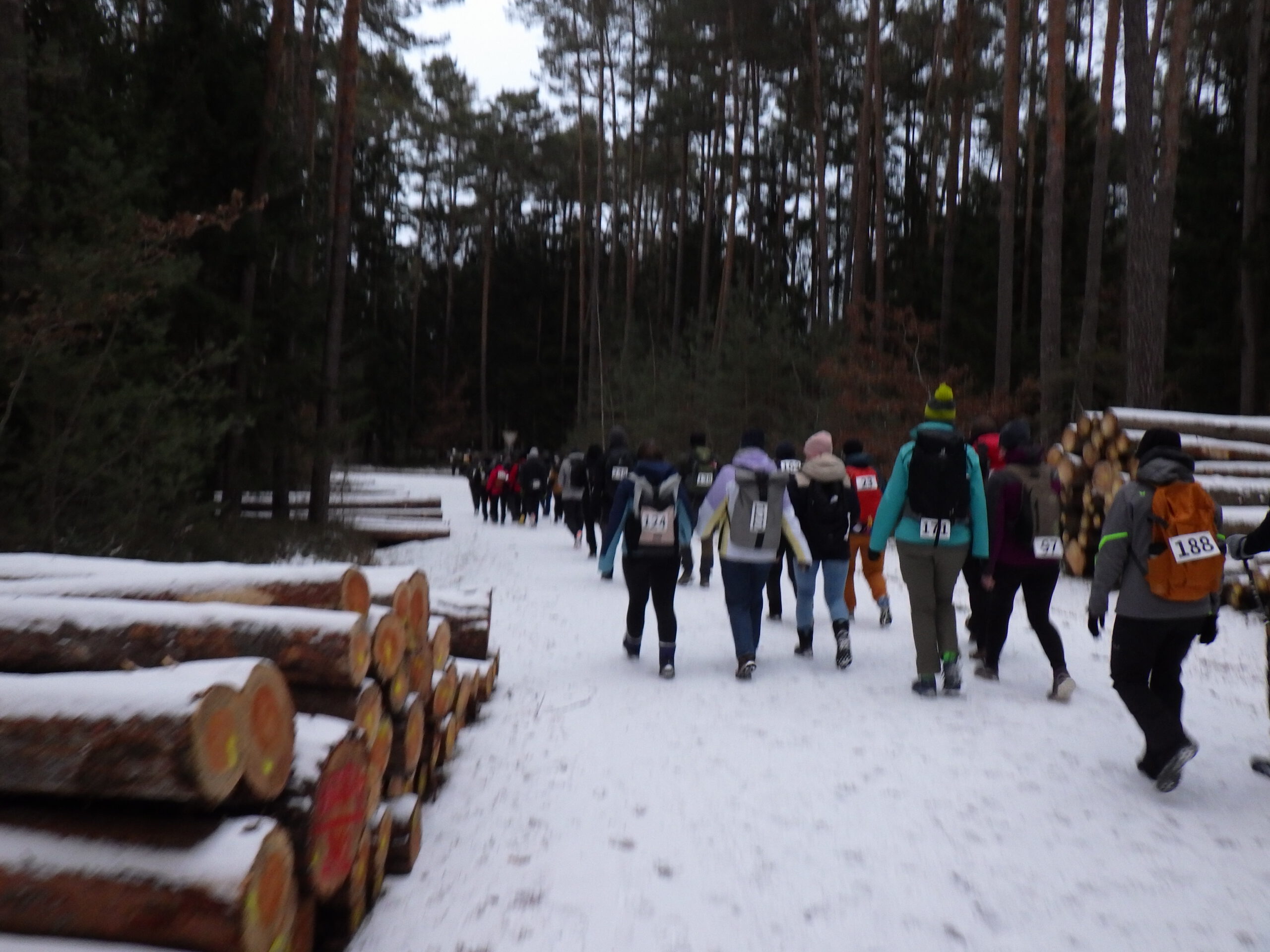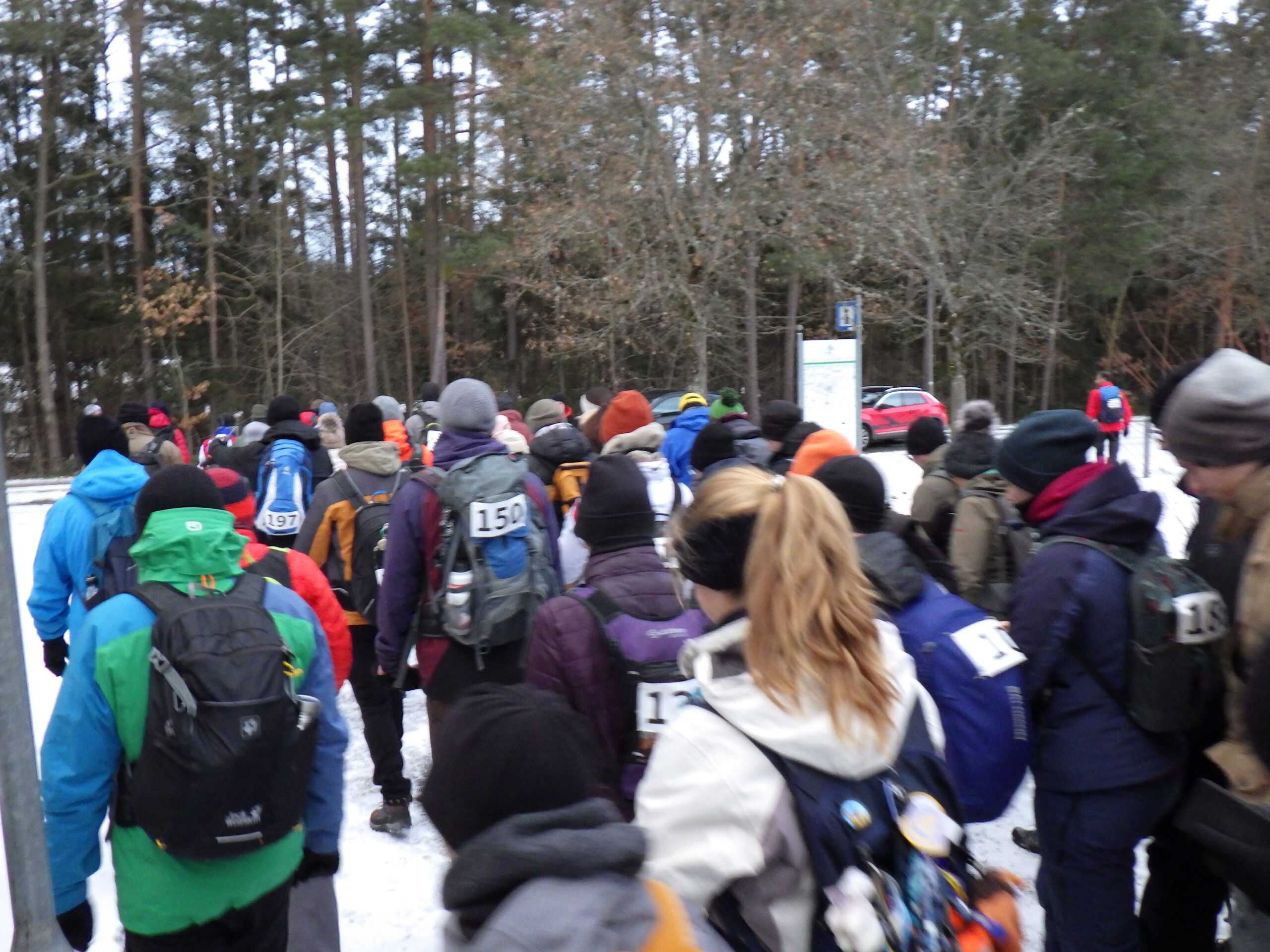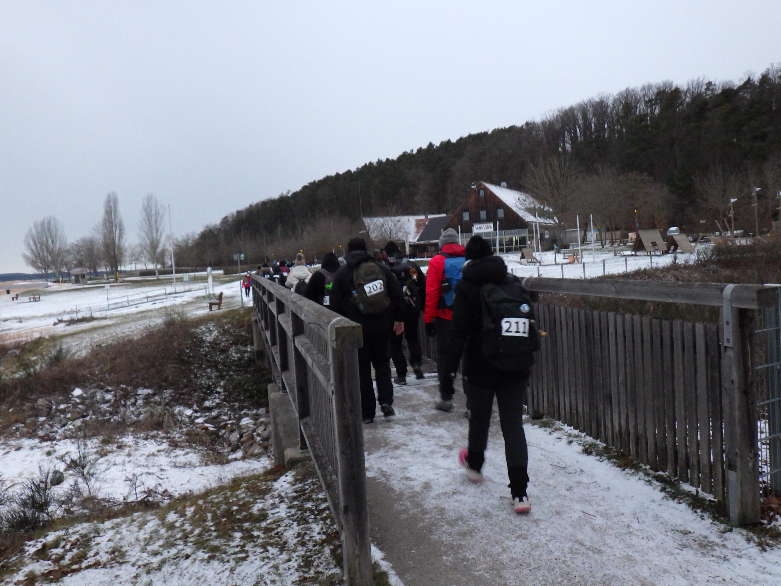 Leider stand ich im Treppenhaus und habe den Vortrag von Michael Snehotta, dem bekannten Ultralangstreckenläufer und Kopf hinter Seenland.Events, nicht gehört. Aber das ist ja nicht mein erster Nachtmarsch. 16:00 Uhr gab es dann den Start der 120 Teilnehmer. Es gab keinerlei Markierungen auf der Strecke, der Veranstalter hatte auf Komoot verwiesen. Ich hatte die Gemyse-Winterjacke und die Skihosen an, das war dann stellenweise etwas zu warm.