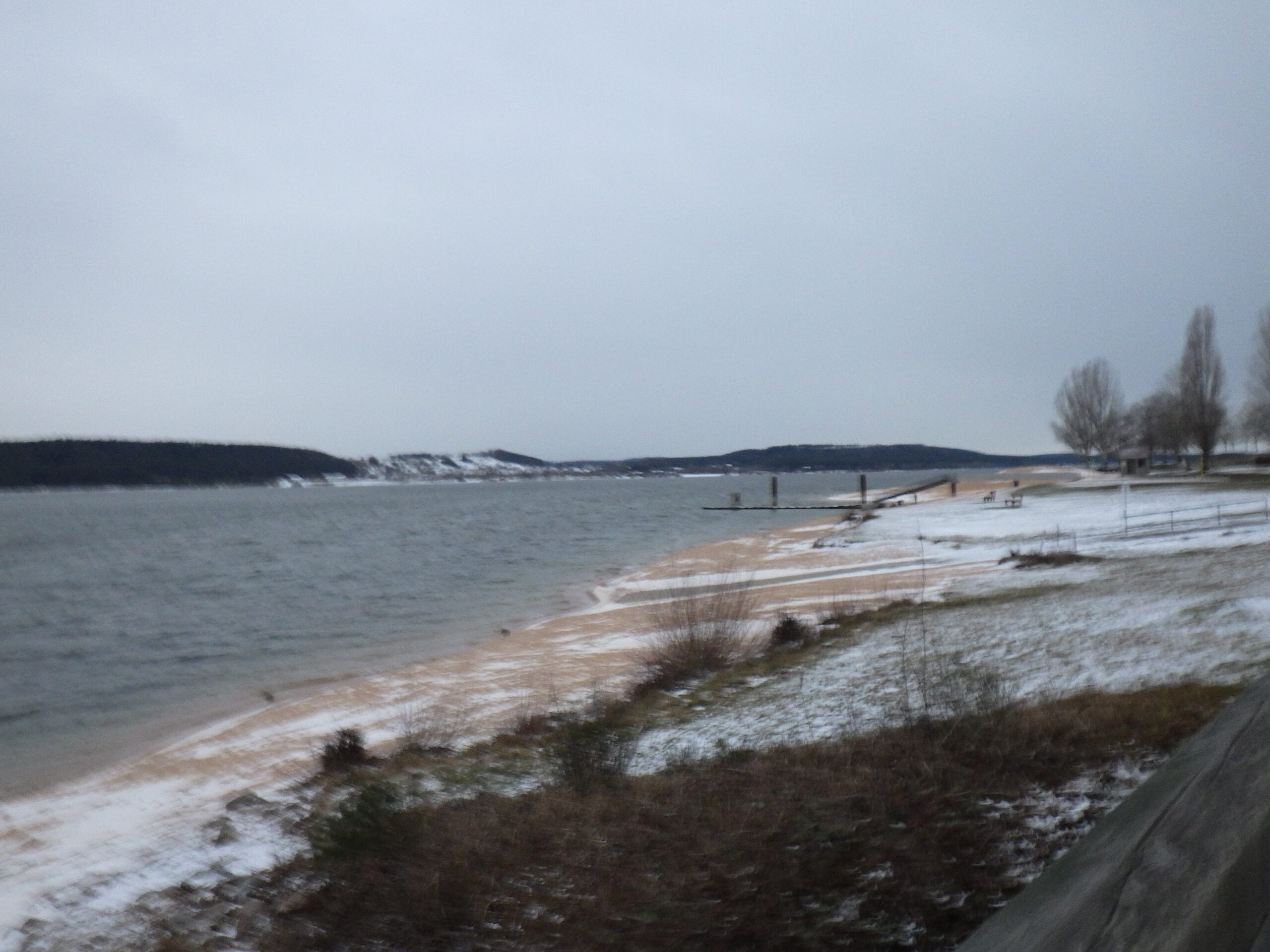 Vom Start ging es erstmal durch den Wald zum Brombachsee. Größtenteils lag frischer Schnee. Nur an einigen Stellen gab es überschneites Eis. Der Große Brombachsee ist eine Talsperre, von der wir den Erddamm von 1,7 Kilometer Länge, der den Brombach und den Igelsbach staut, überquerten. Am Ausbaubauwerk gibt es auch Turbinen zur Stromerzeugung, die ich aber nicht von oben gesehen habe.