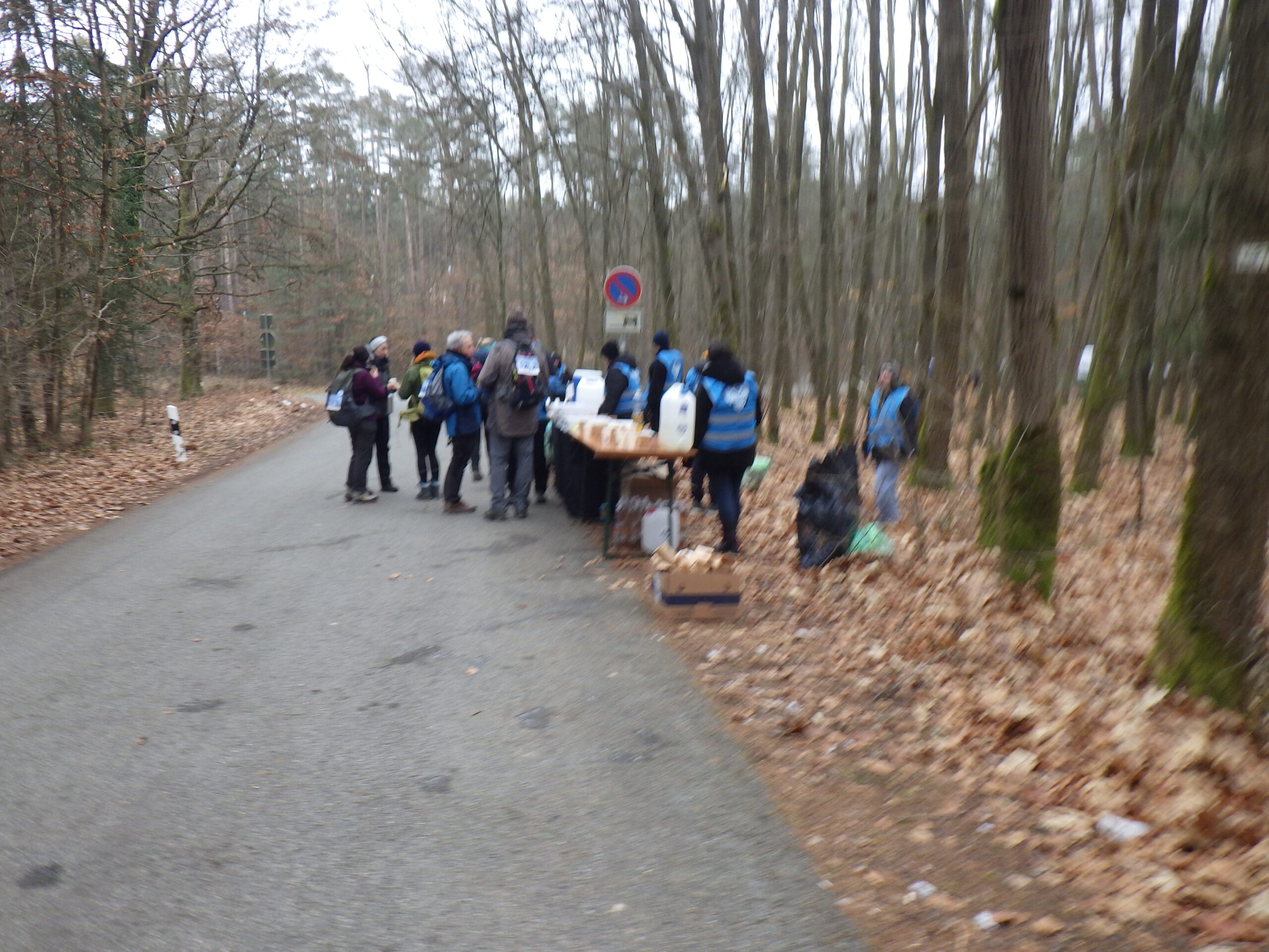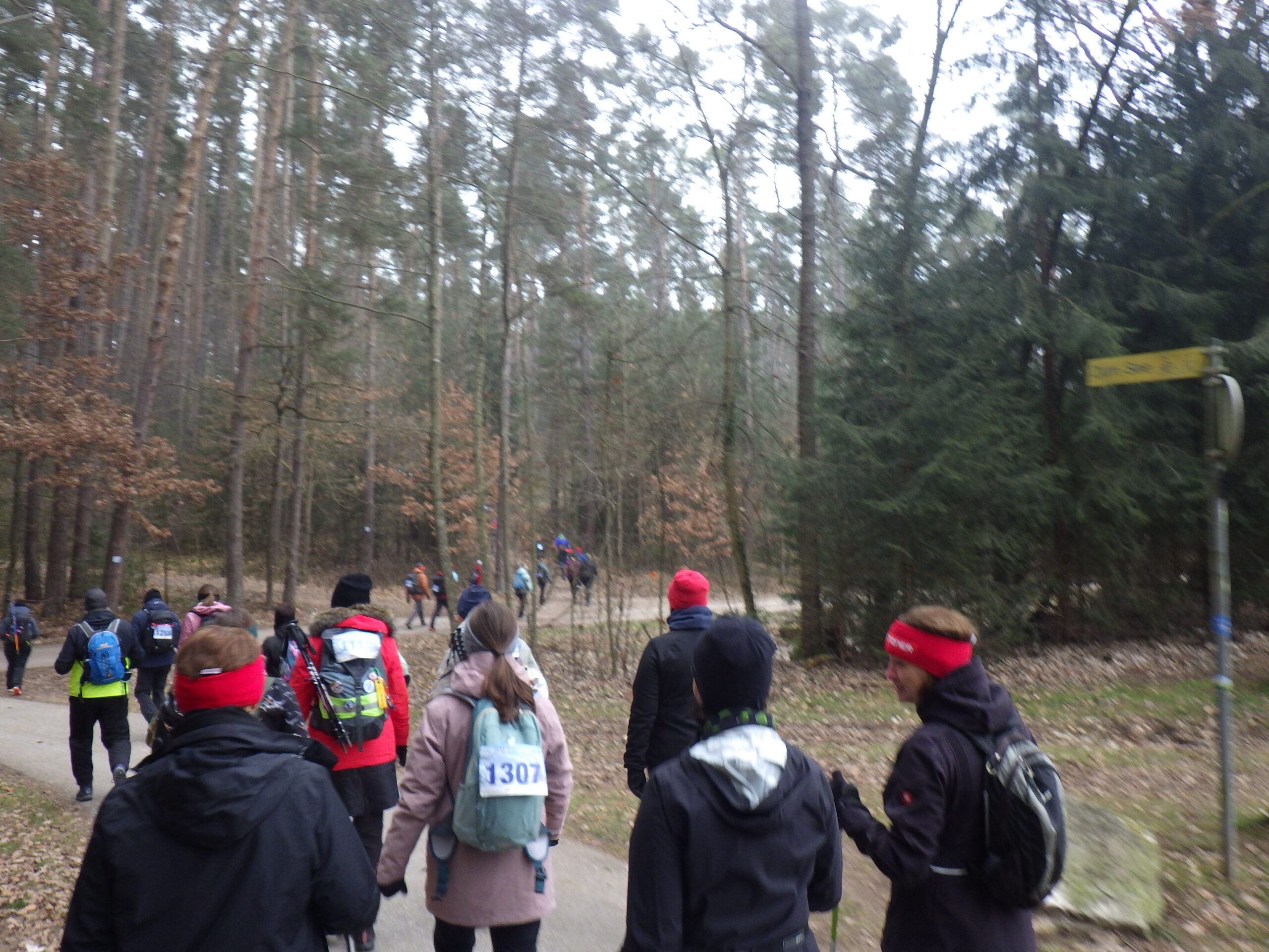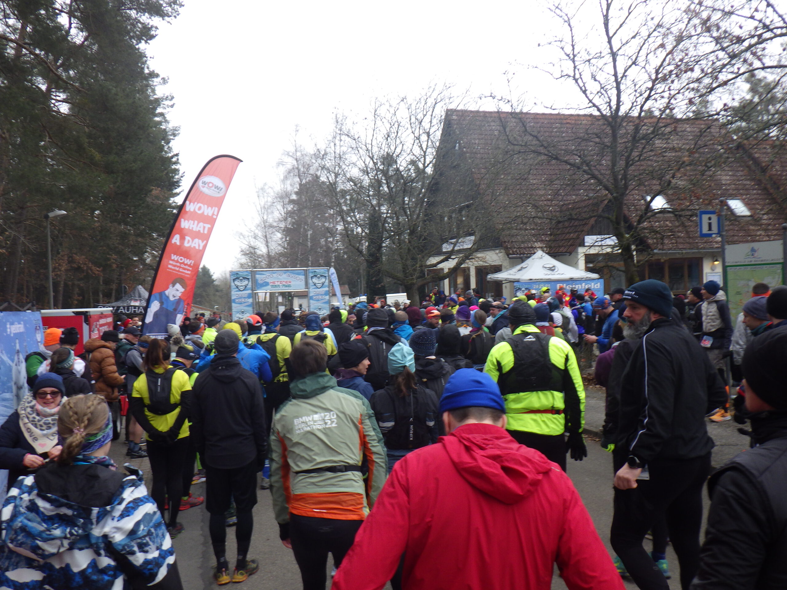 Gleich nach dem Start kamen die ersten Abweichungen der ausgeschilderten Strecke vom Komoot-Track. Ab Kilometer 4 kriegte ich dann „Kalt. Hart. Unvergesslich.“ (Motto der Veranstaltung) bis zum Abwinken. Dann kam so ein „Anstieg des Todes“ – geschätzt über 20%. Ich musste einige kleine Pausen machen. Verbunden mit furchtbarem Gejapse. Den oberen Teil musste ich dann von Baum zu Baum hüpfen. Andere sind auf allen Vieren hochgekrochen. Oben wartete eine bekannte Asphaltpiste – dort war ich zum Wolfsmondmarsch herauf gelaufen. Diesmal ging es abwärts nach Ramsberg.