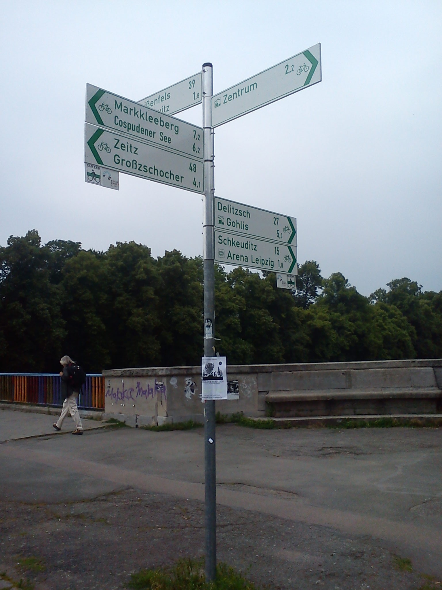 Sachsenbrücke mit Fahrradwegweiser
