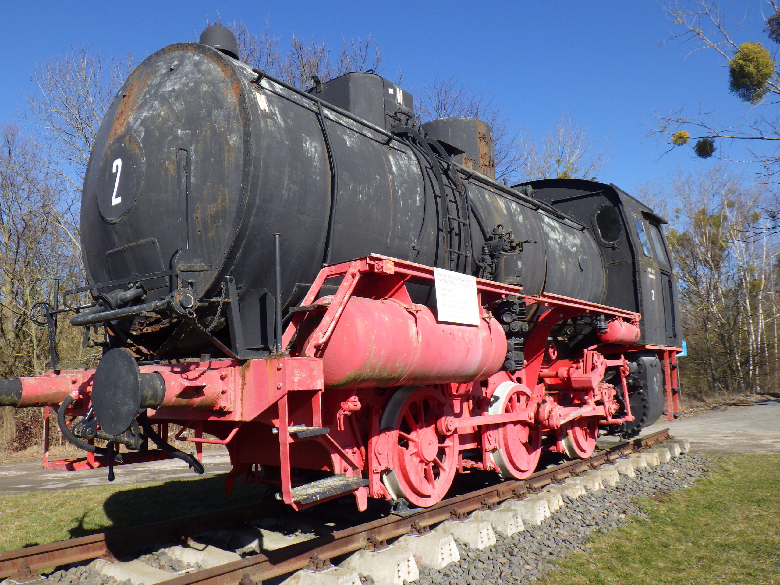 Direkt am Wanderweg um den See herum steht eine feuerlose Lokomotive. Die aus dem Jahr 1955 stammende Dampfspeicherlokomotive „2“ aus Babelsberg steht seit 2000 nach liebevoller Restaurierung am Muldestausee. Eine Dampfspeicherlokomotive muss das Wasser im Kessel der aus einem externen Dampfkessel beziehen. Das hat den Vorteil, dass da kein Feuer ist, was z.B. in chemischen Werken zu Explosionen führen könnte. Die Lok stammt aus der Chemie-Bude in Buna.