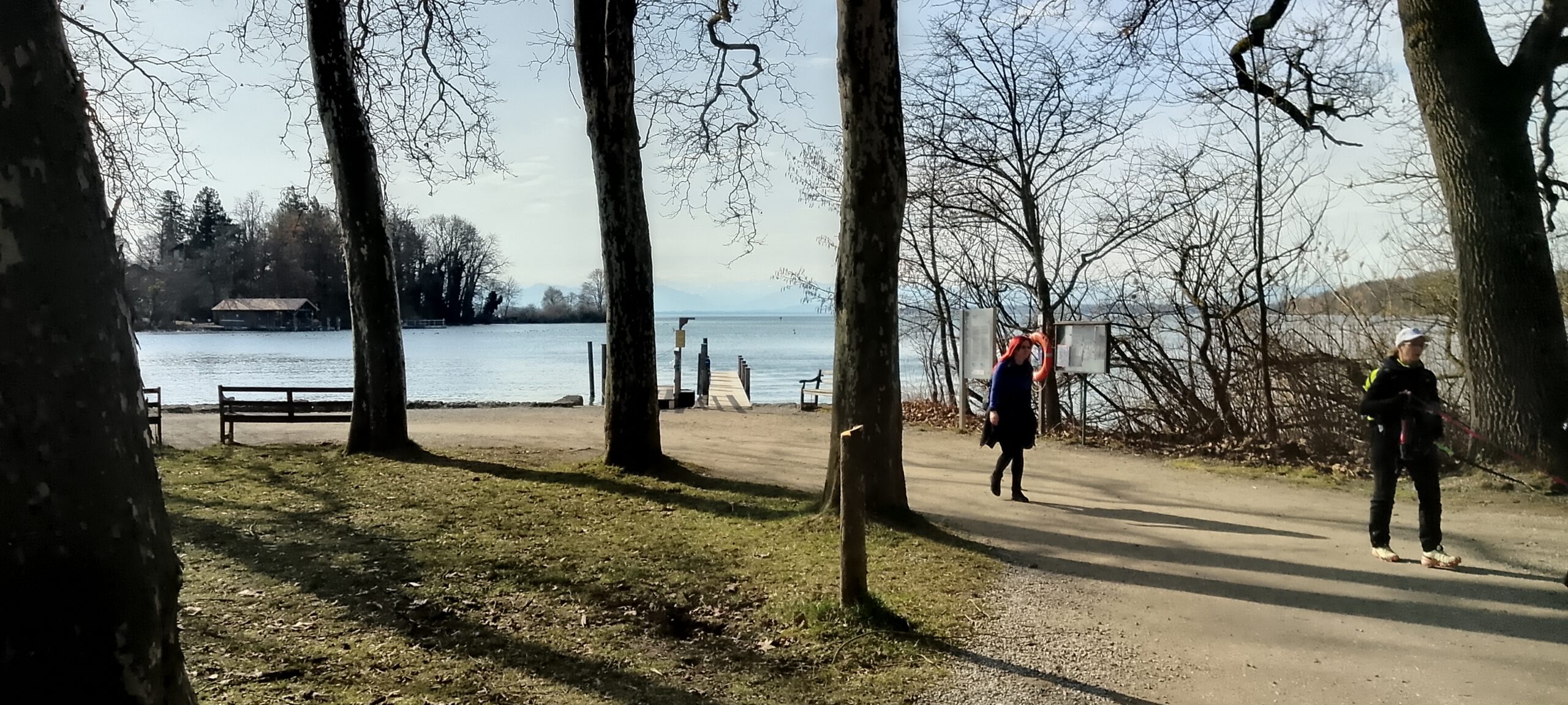 Am zweiten Tag gab es nur die 30er Strecke. Und die ersten sieben Kilometer bis zum VP 1 im Südbad Tutzing, war dieselbe Strecke wie am Vortag. Früh hatte ich in der S-Bahn gelesen, dass in Starnberg, am Nordende des Starnberger Sees, am Vortag der Philosoph und Soziologe Jürgen Habermas verstorben sei. Daher ging es etwas nachdenklich los, das schöne Wetter vertrieb aber die schlechten Gedanken.