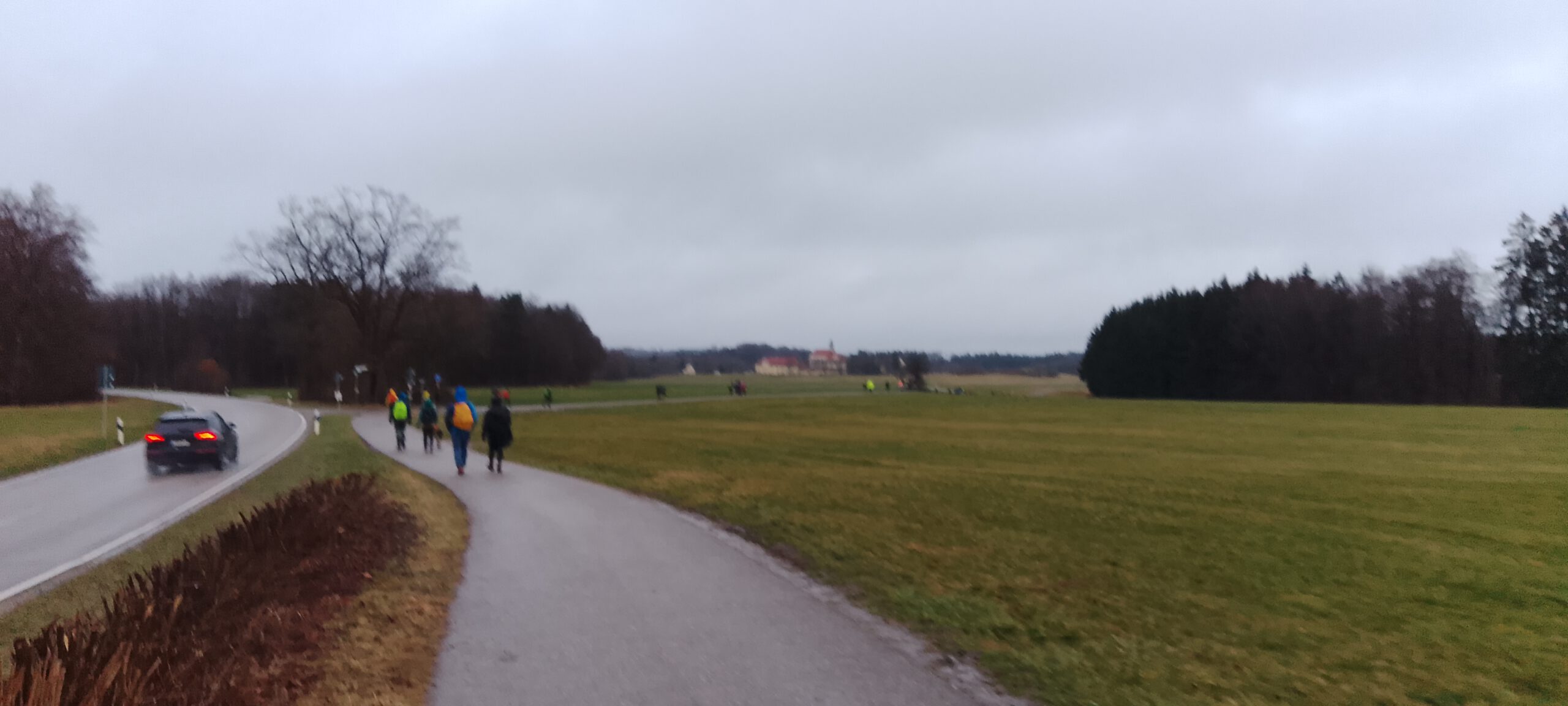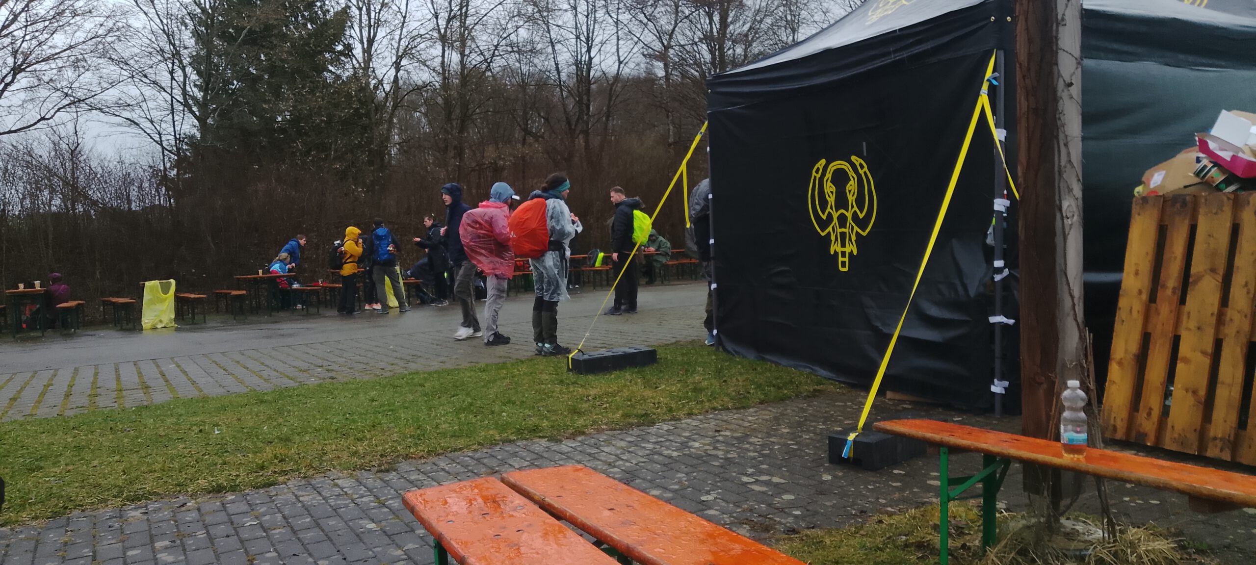Es stellte sich heraus, dass der VP erst bei Kilometer 27 kommt. Da der Komoot-Track sehr genau war, dachte ich, ich hätte es falsch abgeschrieben. Es stellte sich nachträglich heraus, dass im PDF tatsächlich 21 Kilometer stand. Vielleicht war das noch eine alte Strecke. Nun, es ging nach Norden und in Pähl gab es dann den zweiten VP am Sportplatz. Ich schnappte mir eine alte Pappe und setzte mich drauf. Nun war die Hälfte der Strecke schon erwandert.
