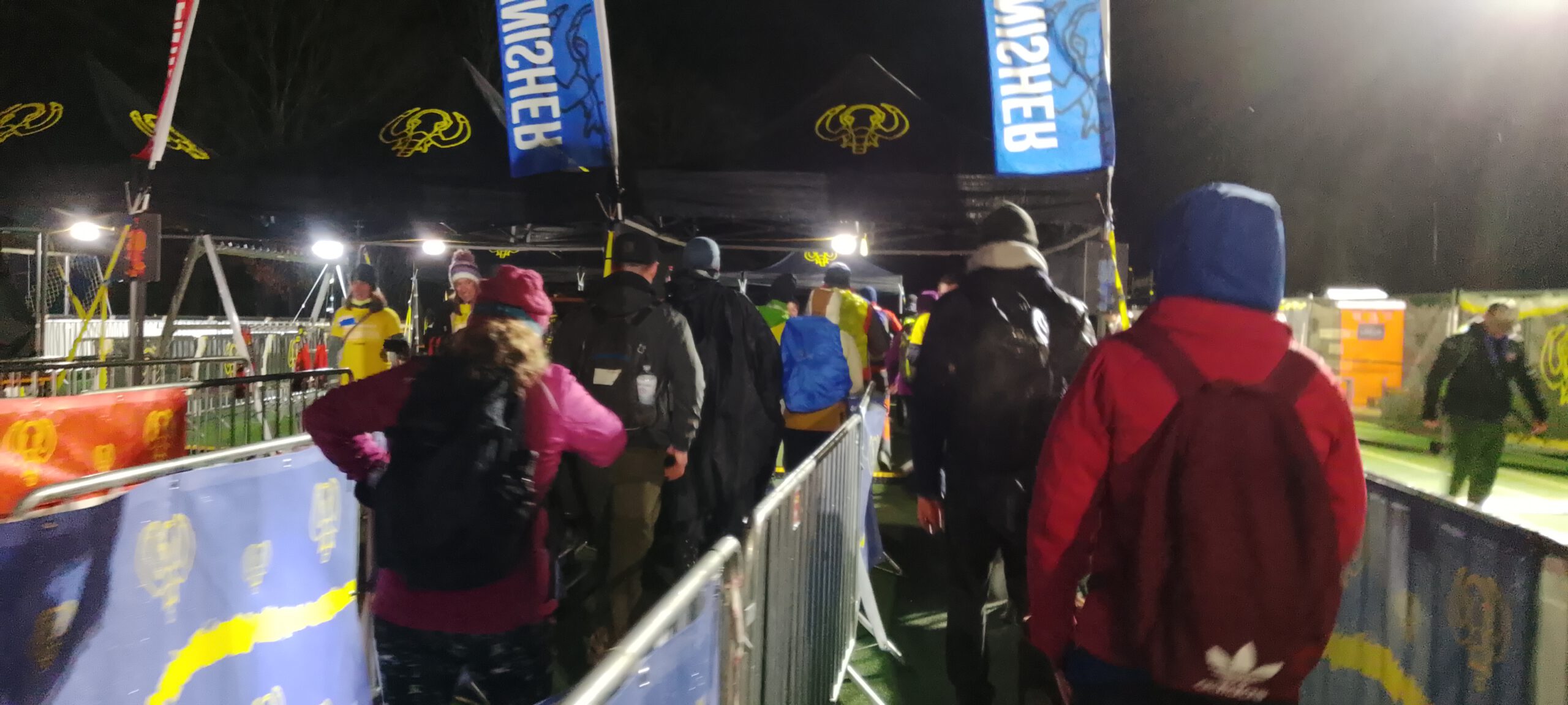 Es gab nichts zu trinken, oder ich habe es nicht gesehen. Ich setzte mich unter ein kleines Dach in den Dreck. Die Beine brauchten eine Pause. Es regnete immer noch. Immer öfter sah man an Bushaltestellen oder einfach am Wegesrand Aussteiger sitzen. Das Wetter ist nicht jedermans Sache. Auch ich hatte kaum noch Lust irgendwelche Fotos zu machen. Irgendwann folgte der VP 4. Es war schon dunkel und ich lief mit Stirnlampe.